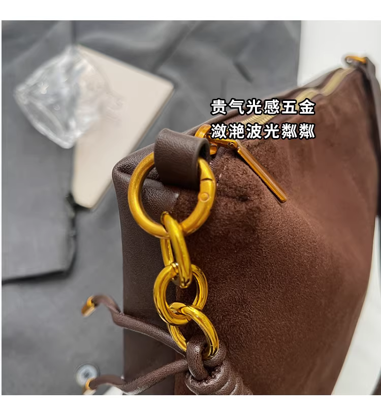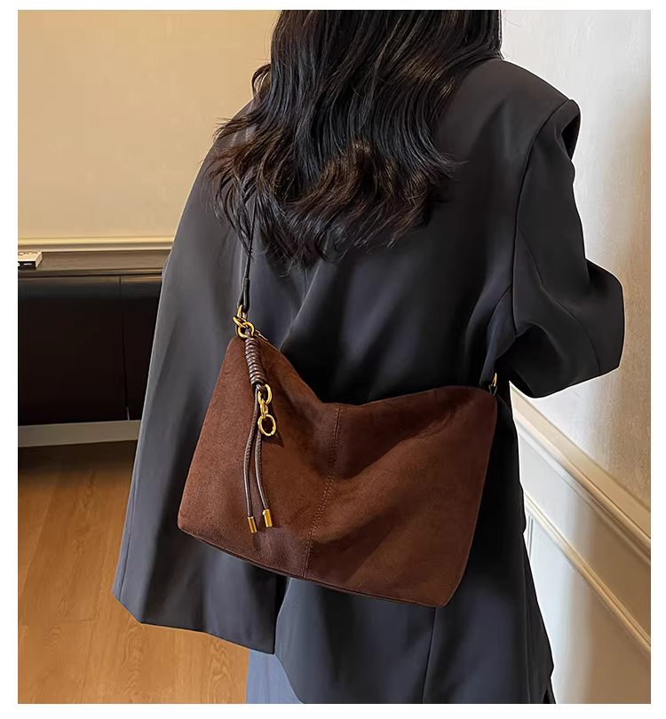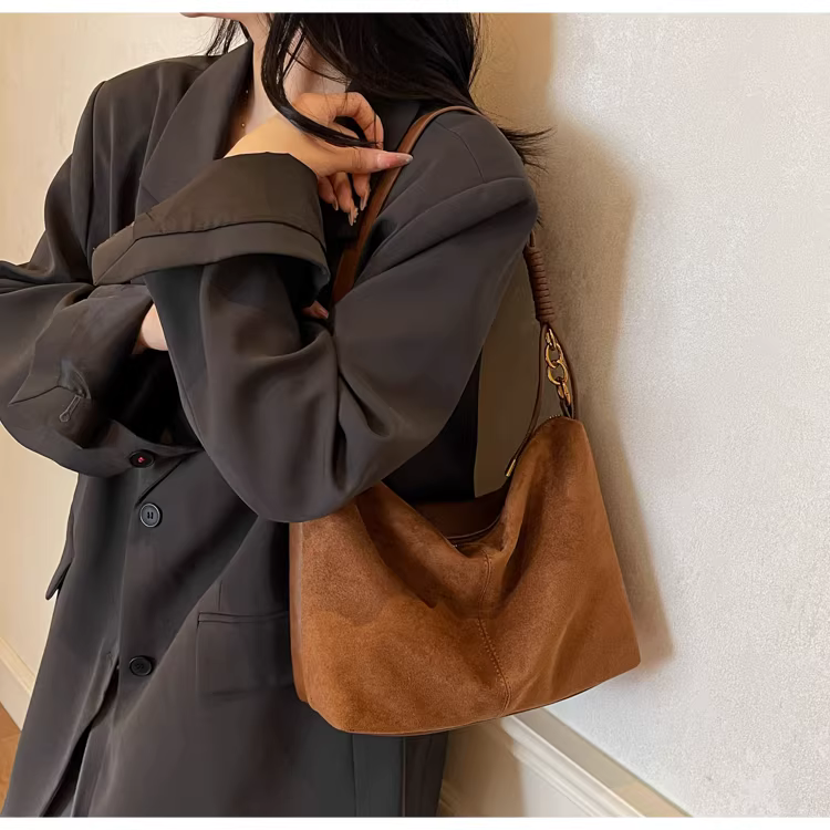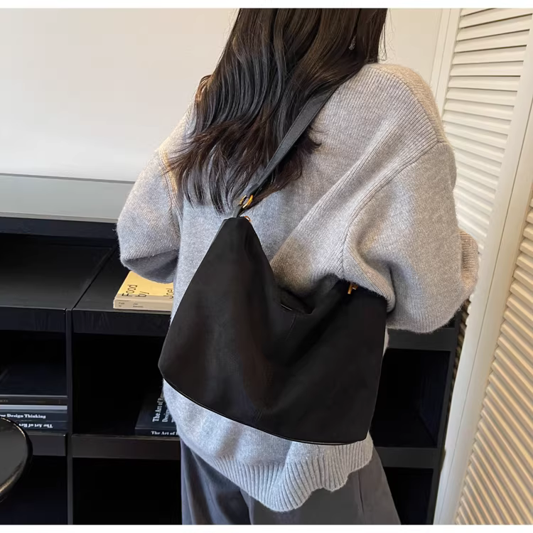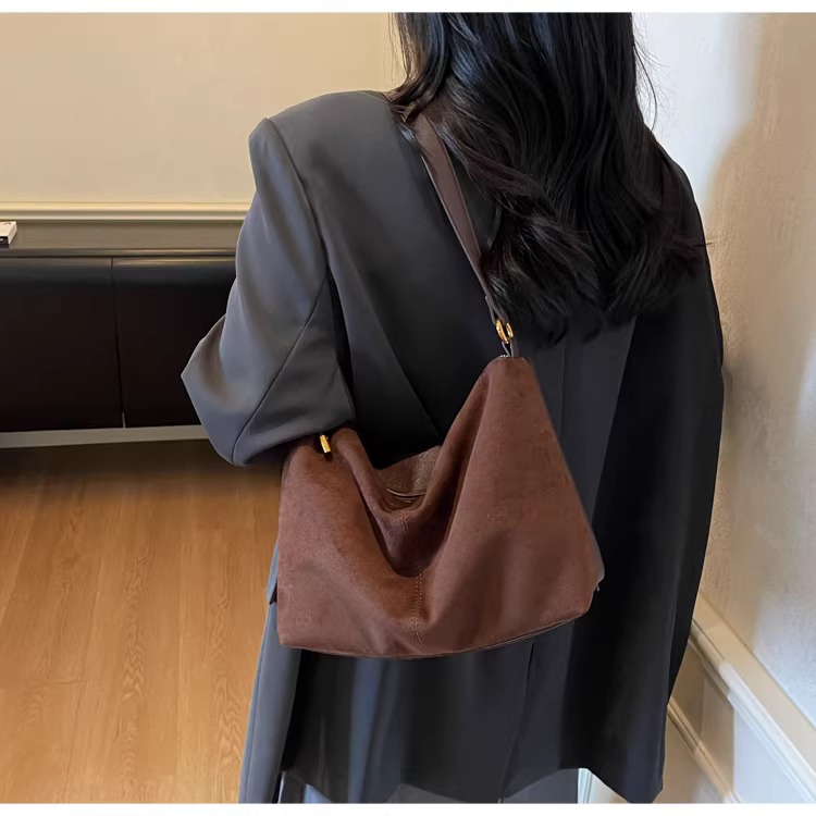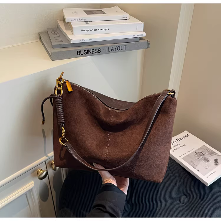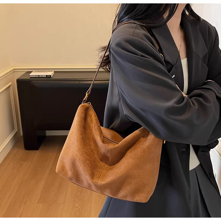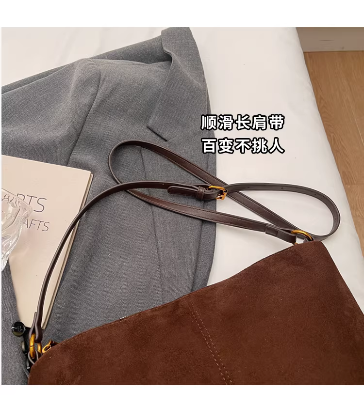 Túi da lộn nữ, dung tích lớn, mẫu mới thu đông 2025, kiểu retro mờ, đeo chéo một bên vai, thích hợp đi làm và đi làm hàng ngày.