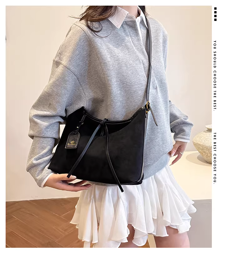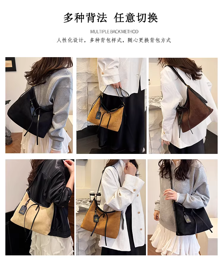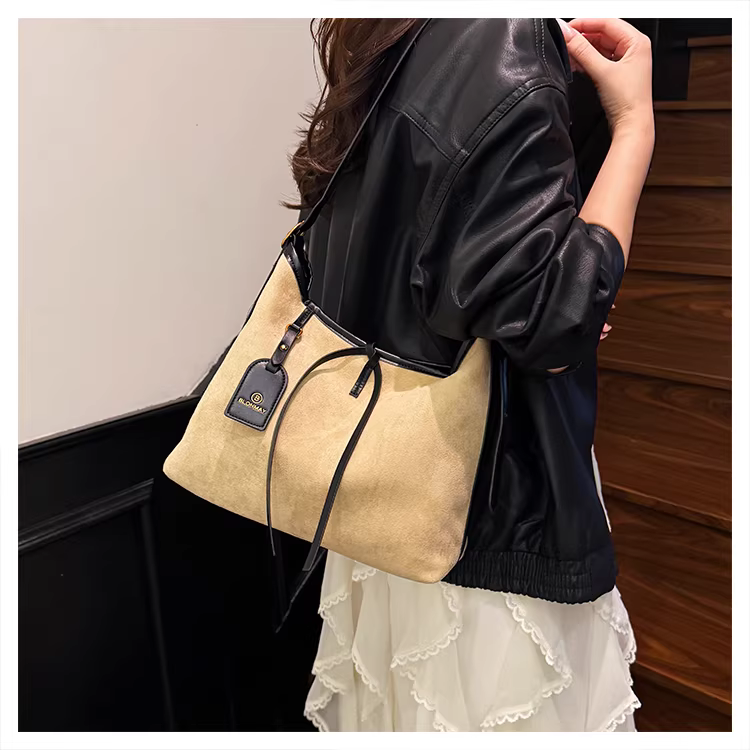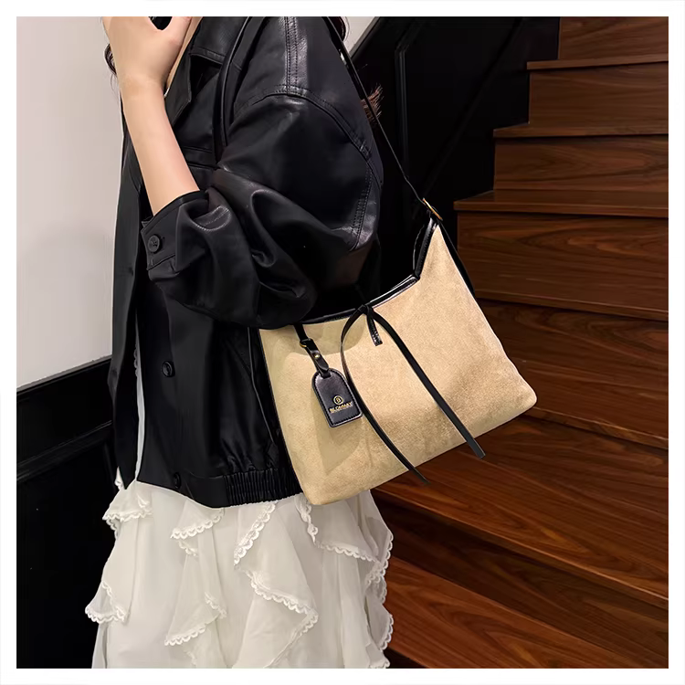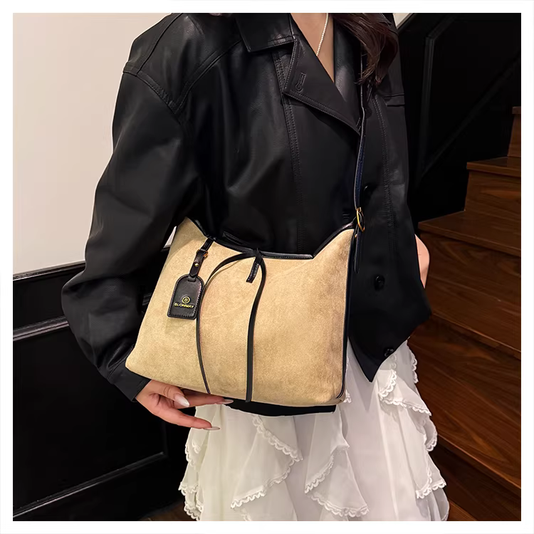 - Túi da lộn nữ, dung tích lớn, mẫu mới thu đông 2025, kiểu retro mờ, đeo vai, đeo chéo, đi làm, kiểu tote