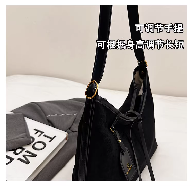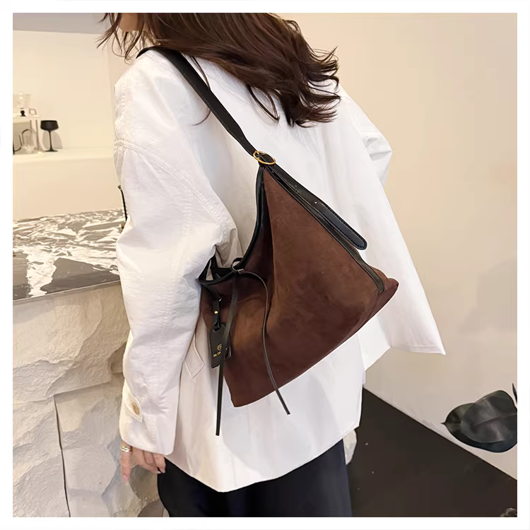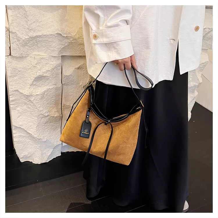Túi da lộn nữ, dung tích lớn, mẫu mới thu đông 2025, kiểu retro mờ, đeo vai, đeo chéo, đi làm, kiểu tote