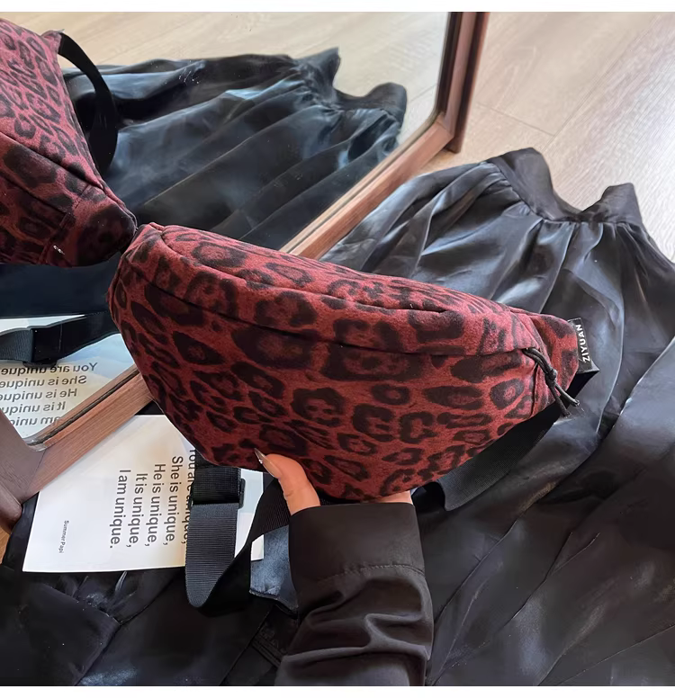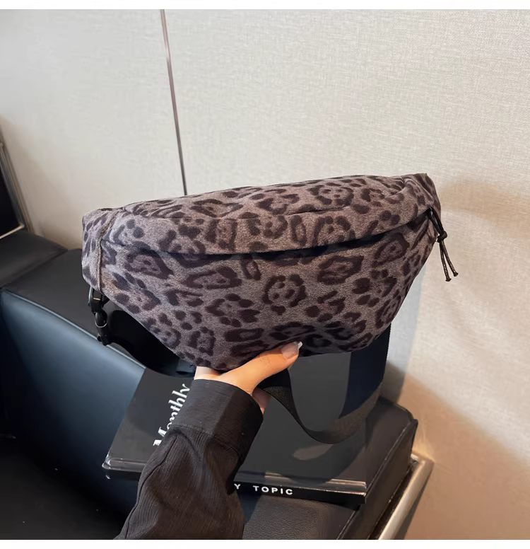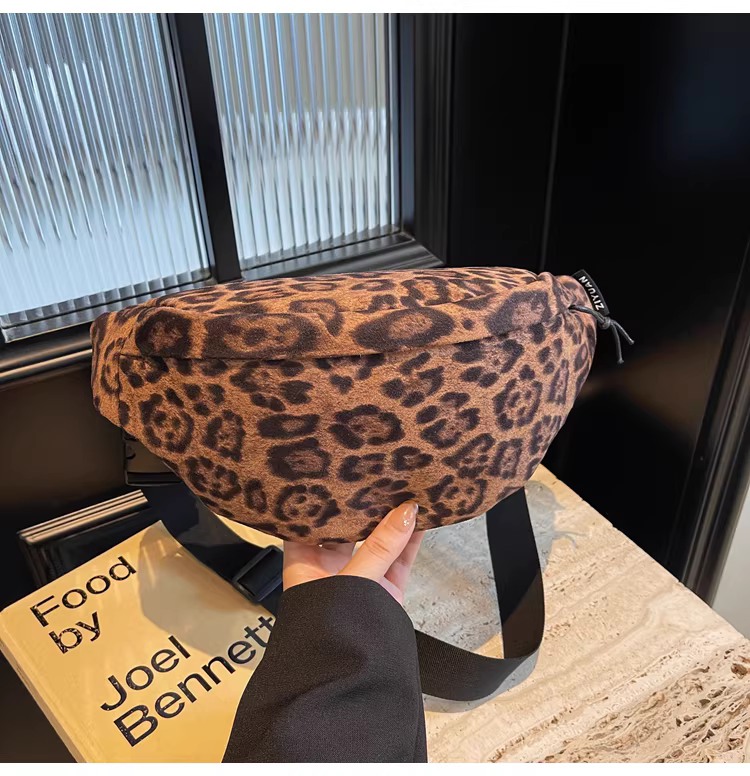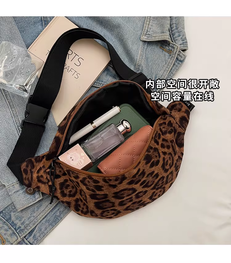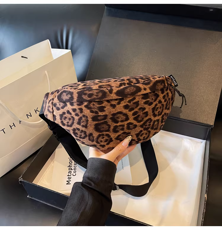 - Túi da lộn nữ, dung tích lớn, mẫu mới thu đông 2025, thiết kế cá tính, túi đeo chéo, túi đeo ngực họa tiết da báo, túi đeo hông