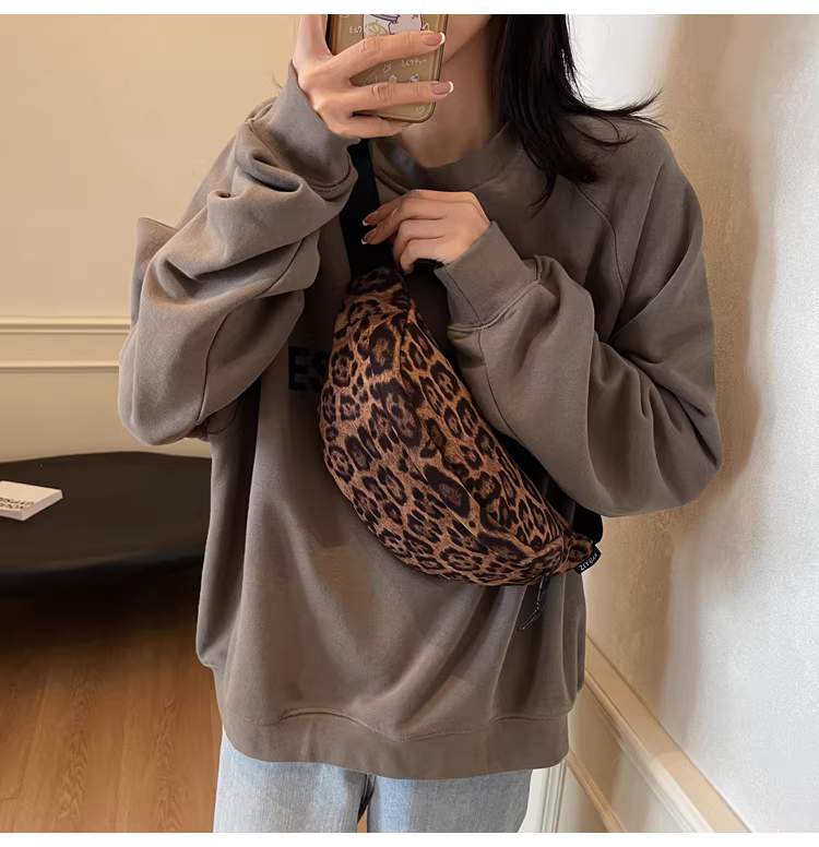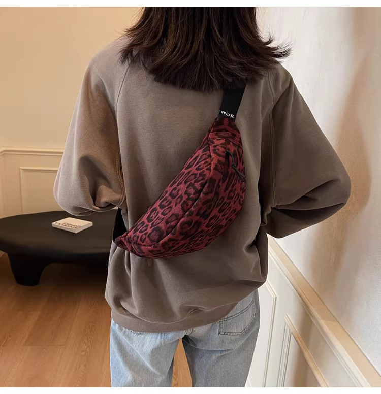 Túi da lộn nữ, dung tích lớn, mẫu mới thu đông 2025, thiết kế cá tính, túi đeo chéo, túi đeo ngực họa tiết da báo, túi đeo hông