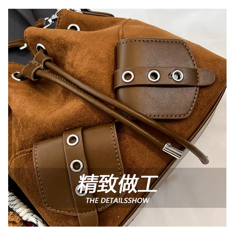 - Túi da lộn nữ, thiết kế độc đáo mùa thu đông 2025, túi đeo chéo kiểu xô cổ điển mờ nhám, dây rút, đang thịnh hành