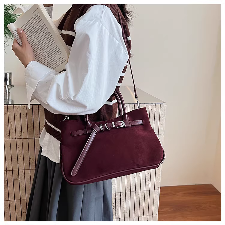 - Túi da lộn retro nữ, dung tích lớn, mẫu mới thu đông 2025, đa năng đeo vai chéo, túi tote đi làm