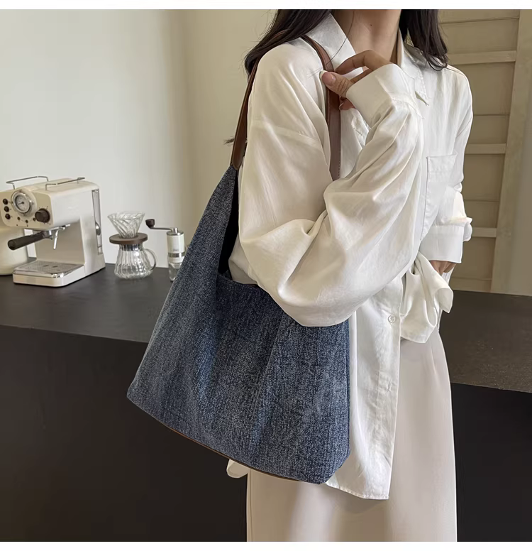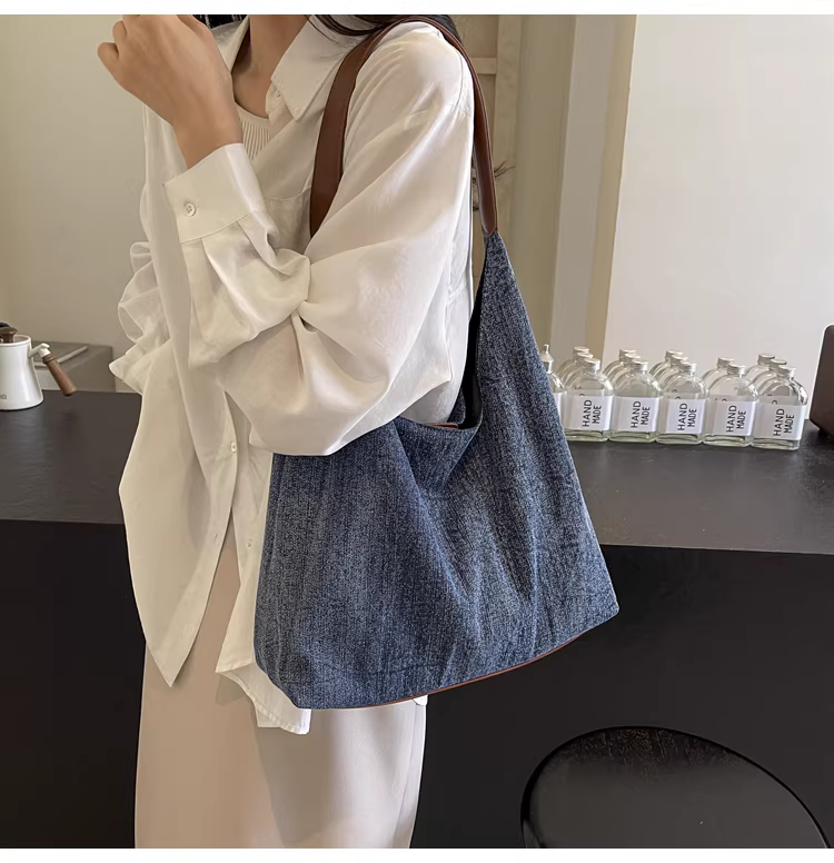 - Túi denim nữ, cao cấp, mẫu mới thu đông 2025, đa năng, đeo vai, túi tote đi làm