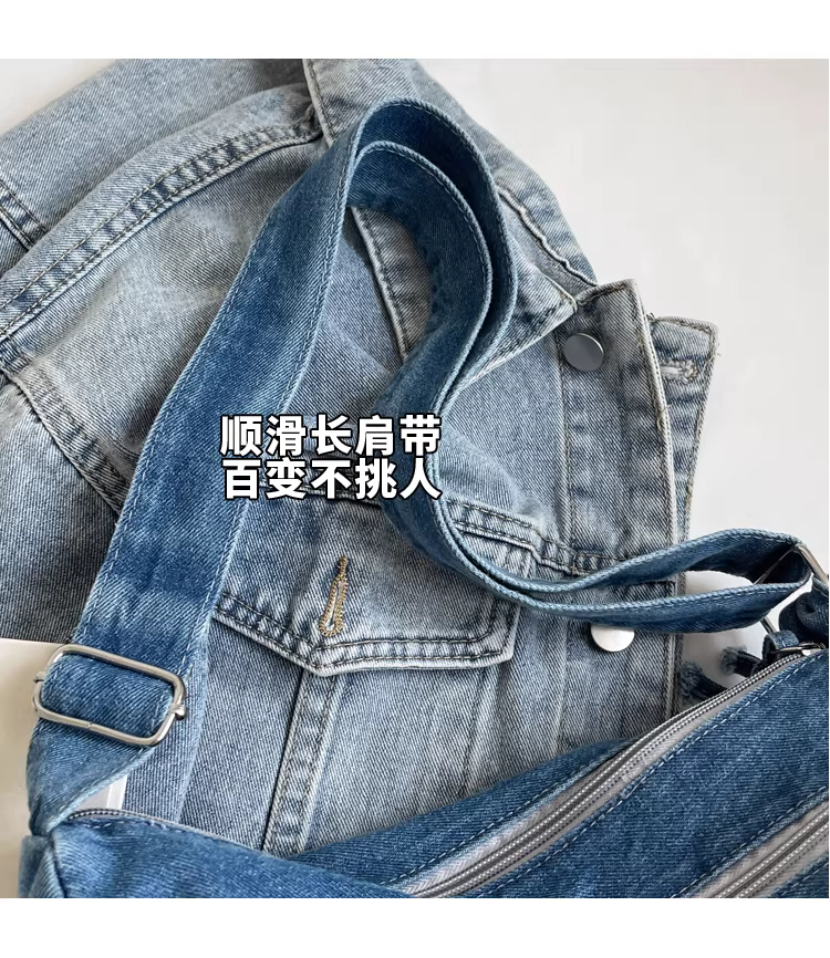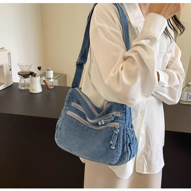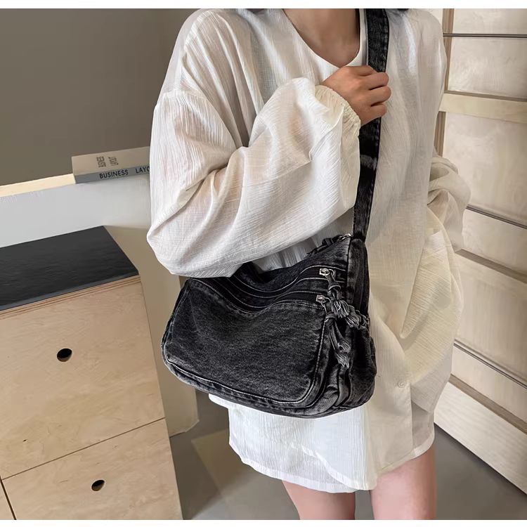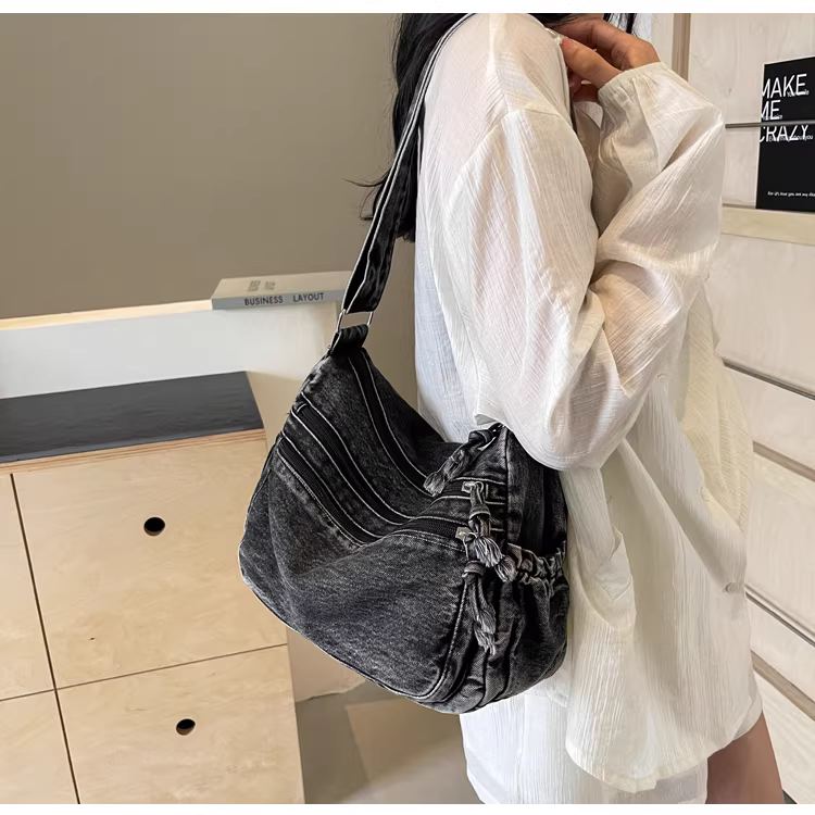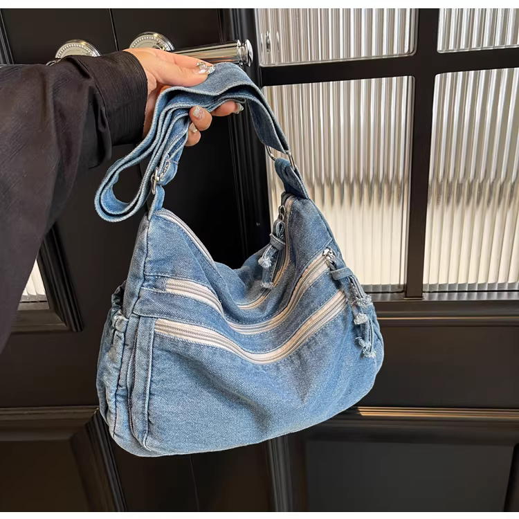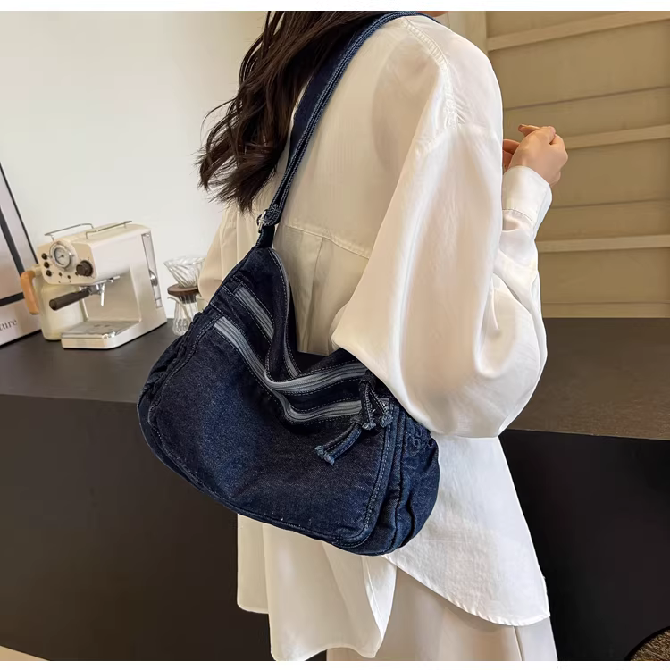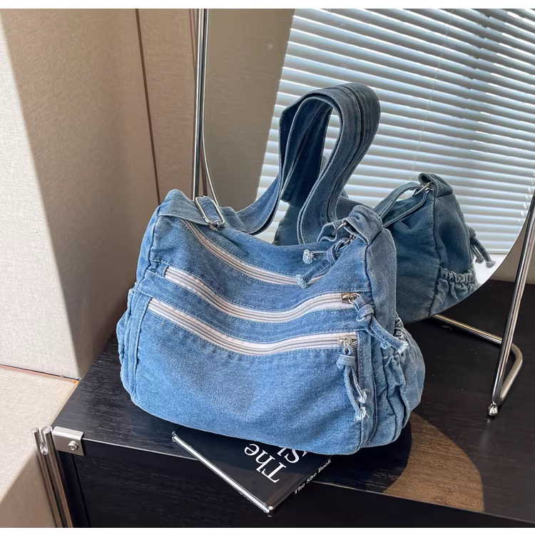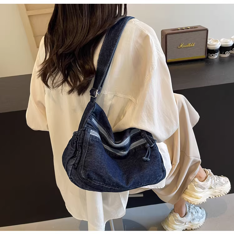 - Túi denim nữ, dung tích lớn, mẫu mới thu đông 2025, túi đeo chéo thường ngày, túi tote đi học đi làm cho sinh viên