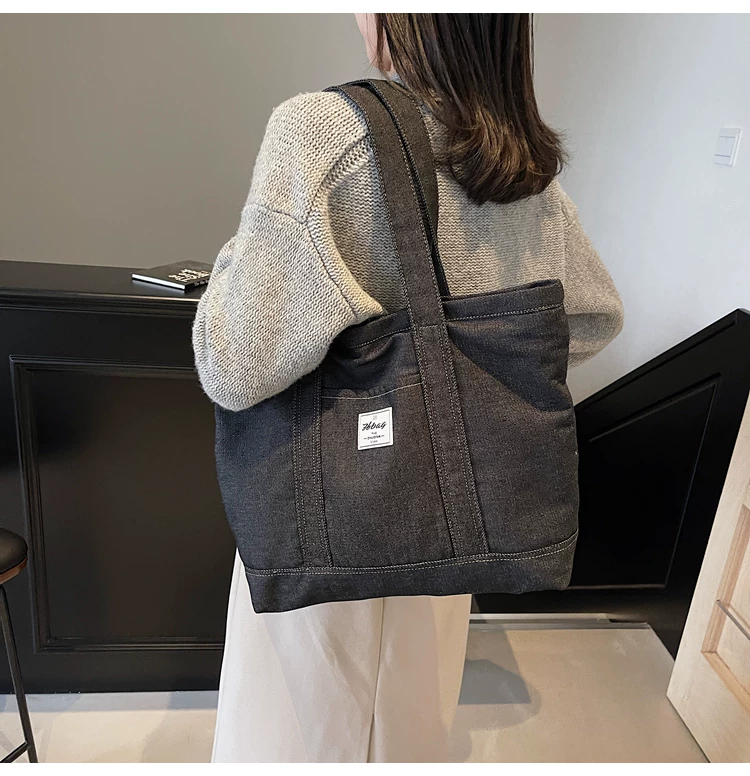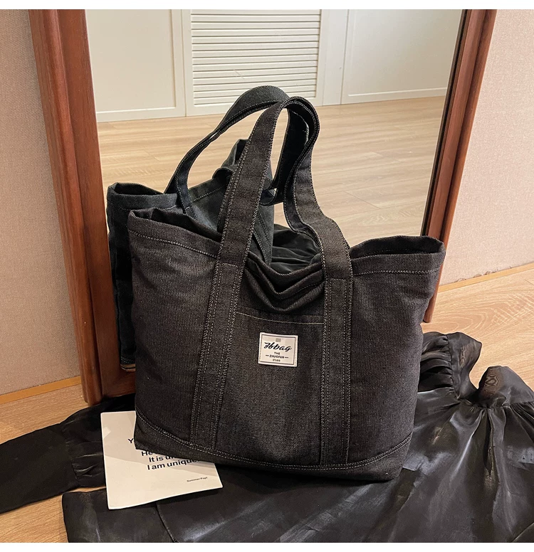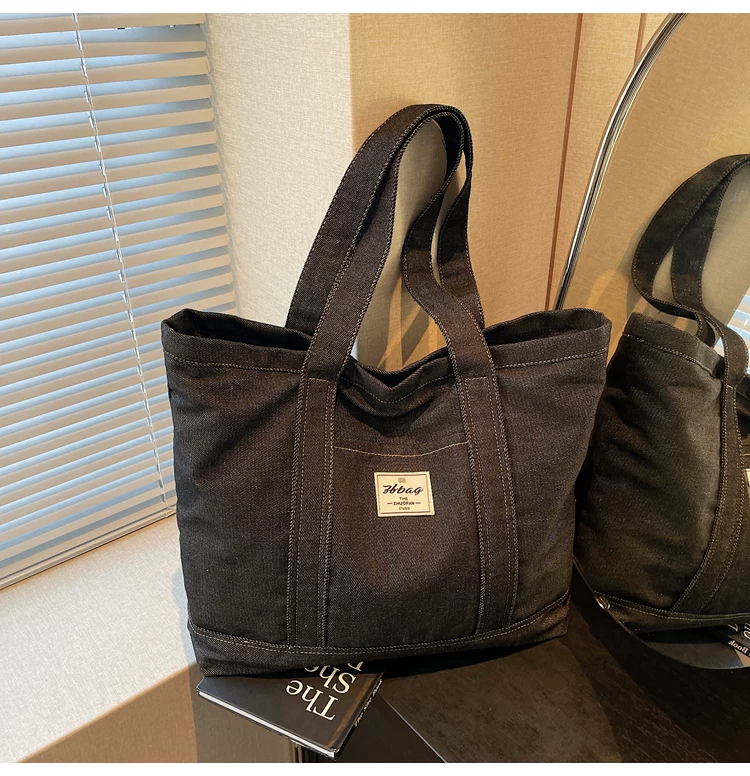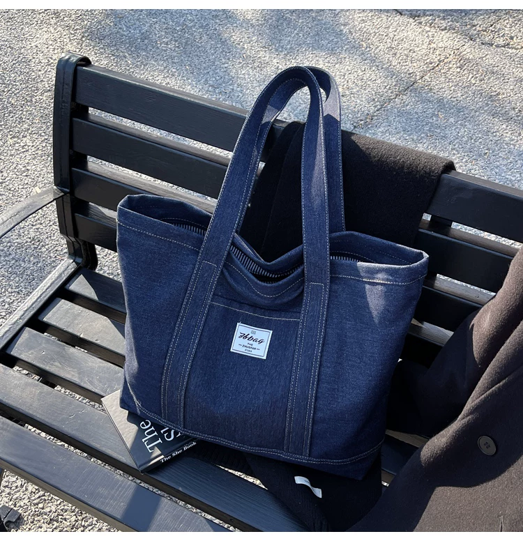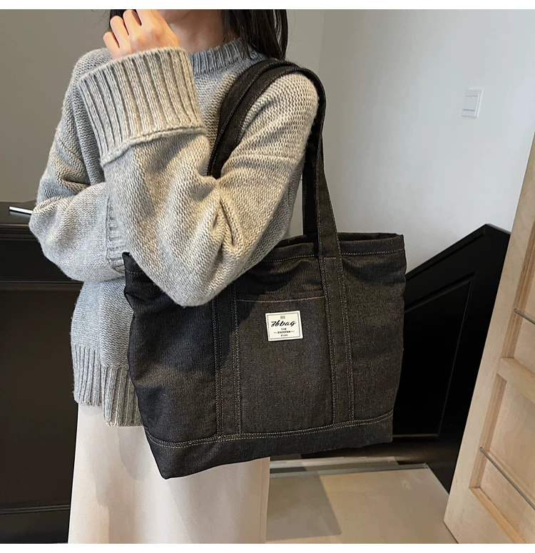 - Túi denim nữ, dung tích lớn, mẫu mới thu đông 2025, túi đeo vai đa năng dành cho sinh viên, túi tote đi làm.