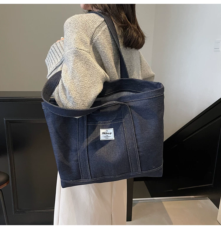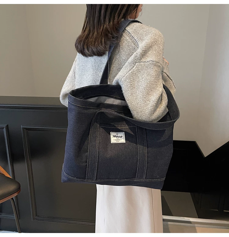 Túi denim nữ, dung tích lớn, mẫu mới thu đông 2025, túi đeo vai đa năng dành cho sinh viên, túi tote đi làm.