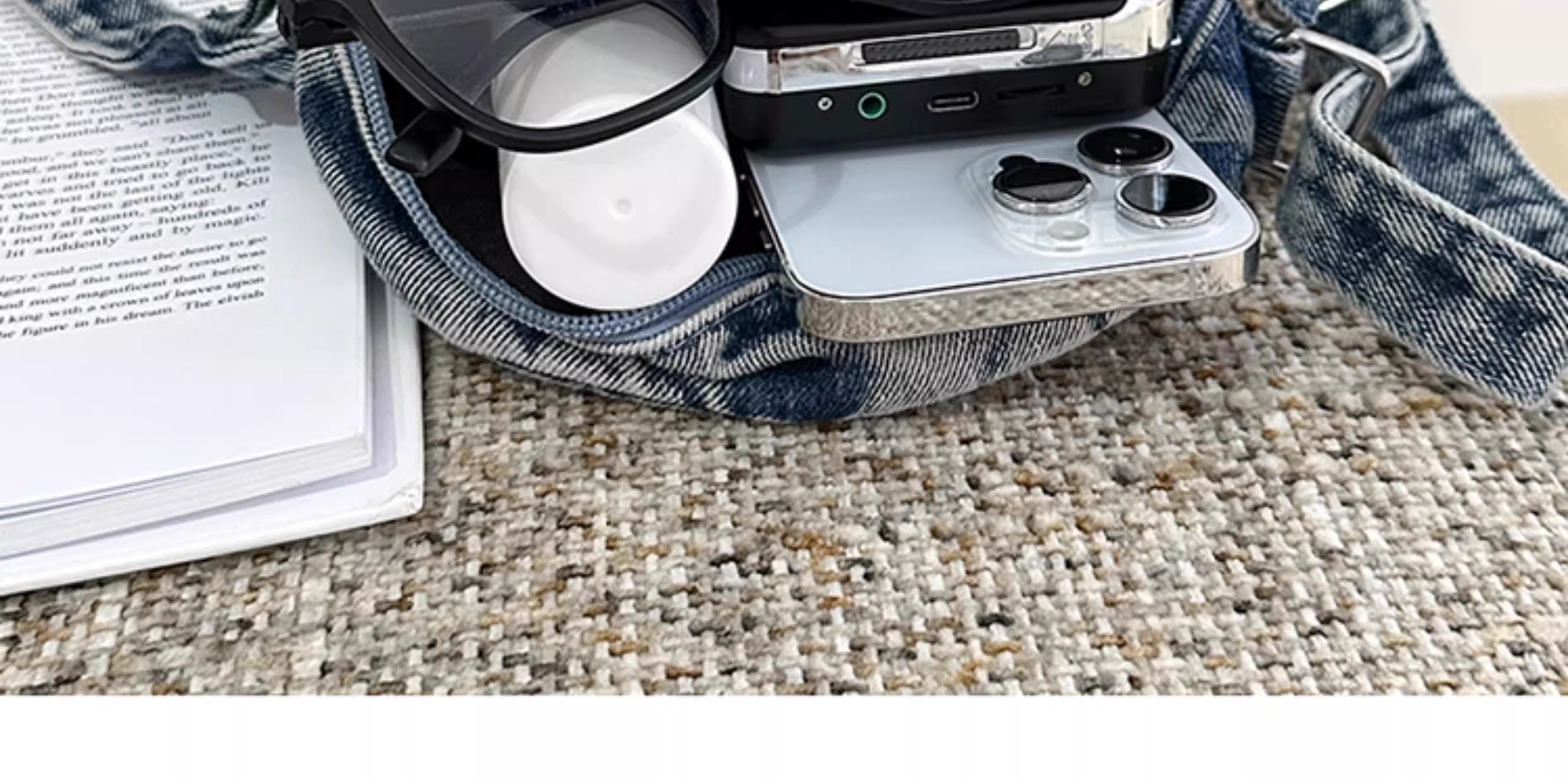- Túi denim nữ, mẫu mới hè 2025, thiết kế độc đáo, đeo chéo một bên vai, túi điện thoại thời trang cao cấp.