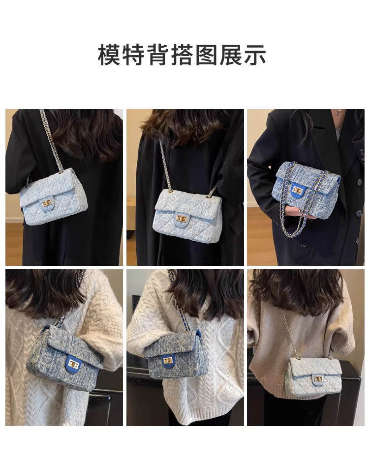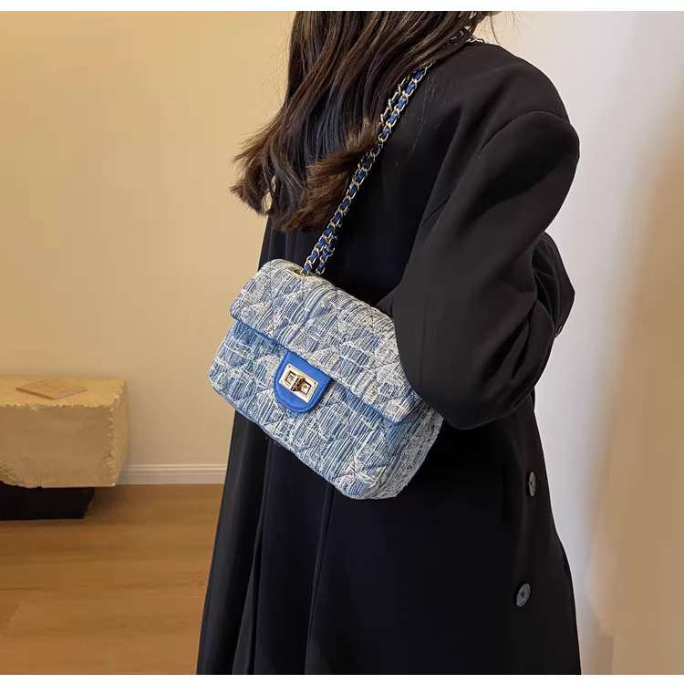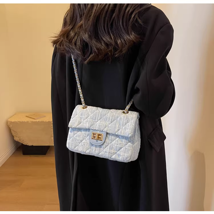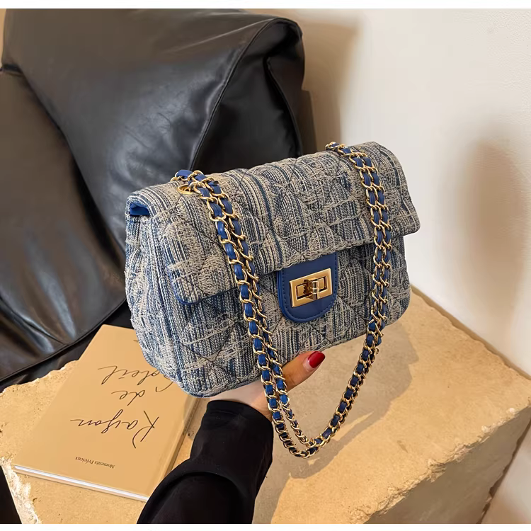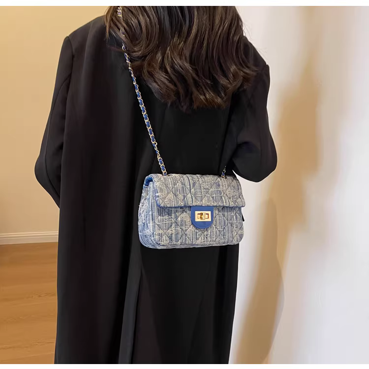 - Túi denim nữ, thiết kế độc đáo, thời trang mới 2025, túi đeo chéo mùa thu may chần, túi đeo vai phổ biến