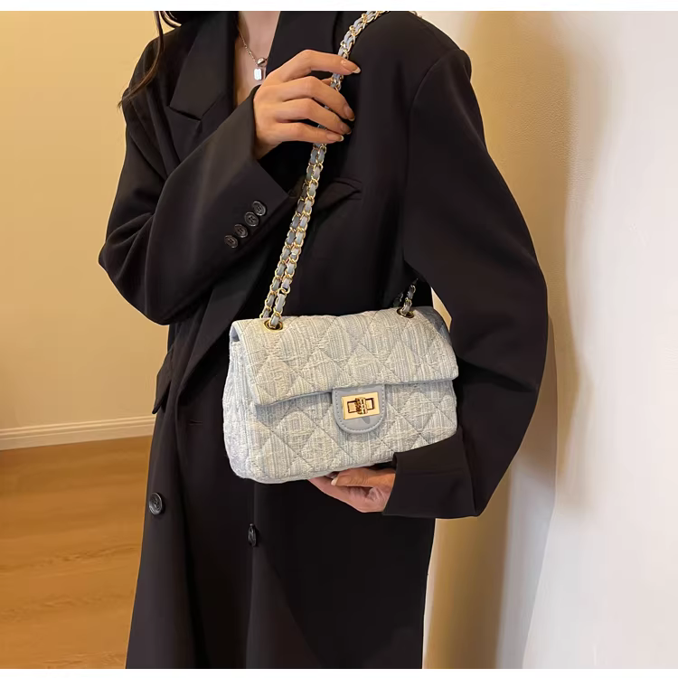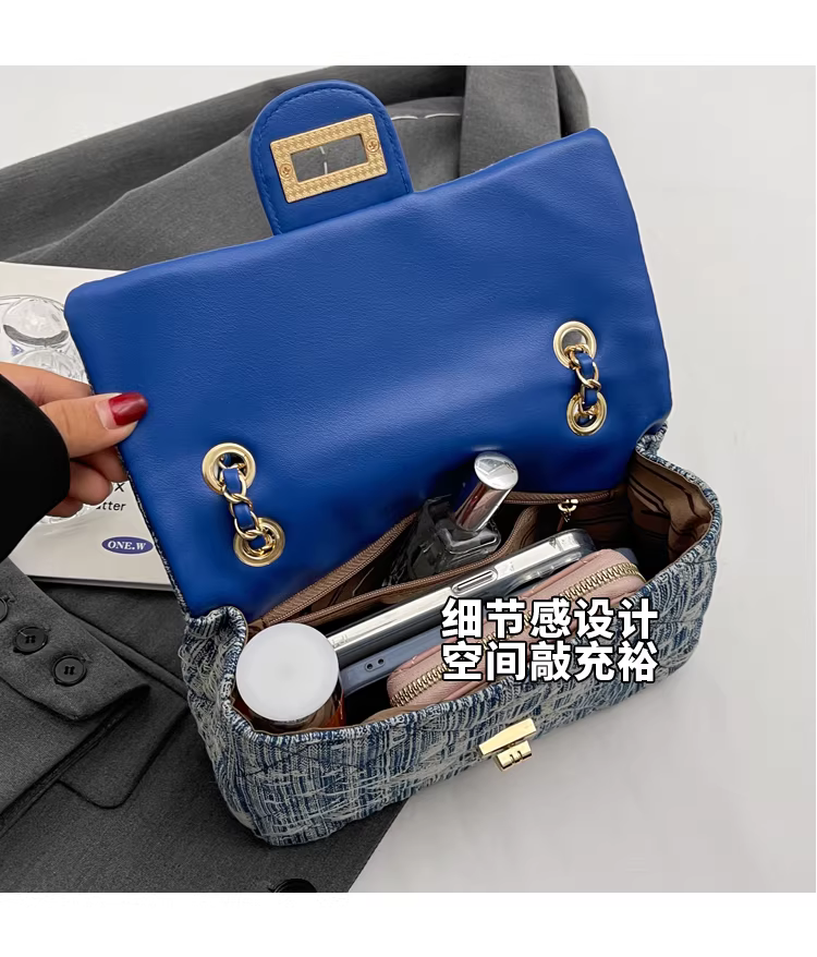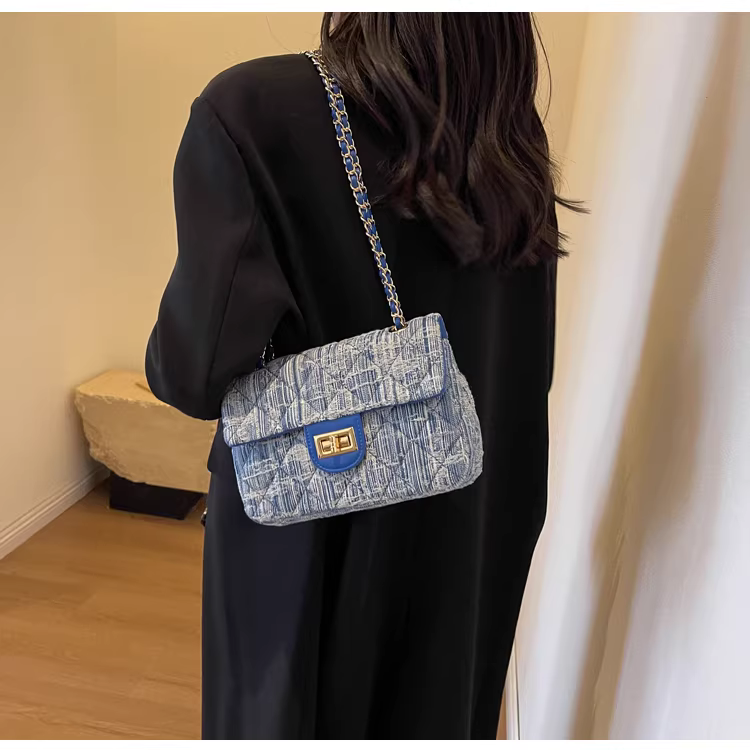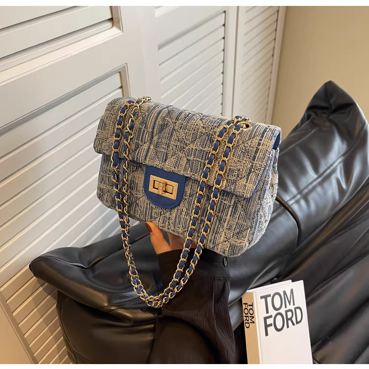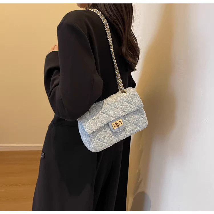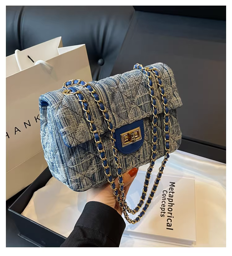 - Túi denim nữ, thiết kế độc đáo, thời trang mới 2025, túi đeo chéo mùa thu may chần, túi đeo vai phổ biến