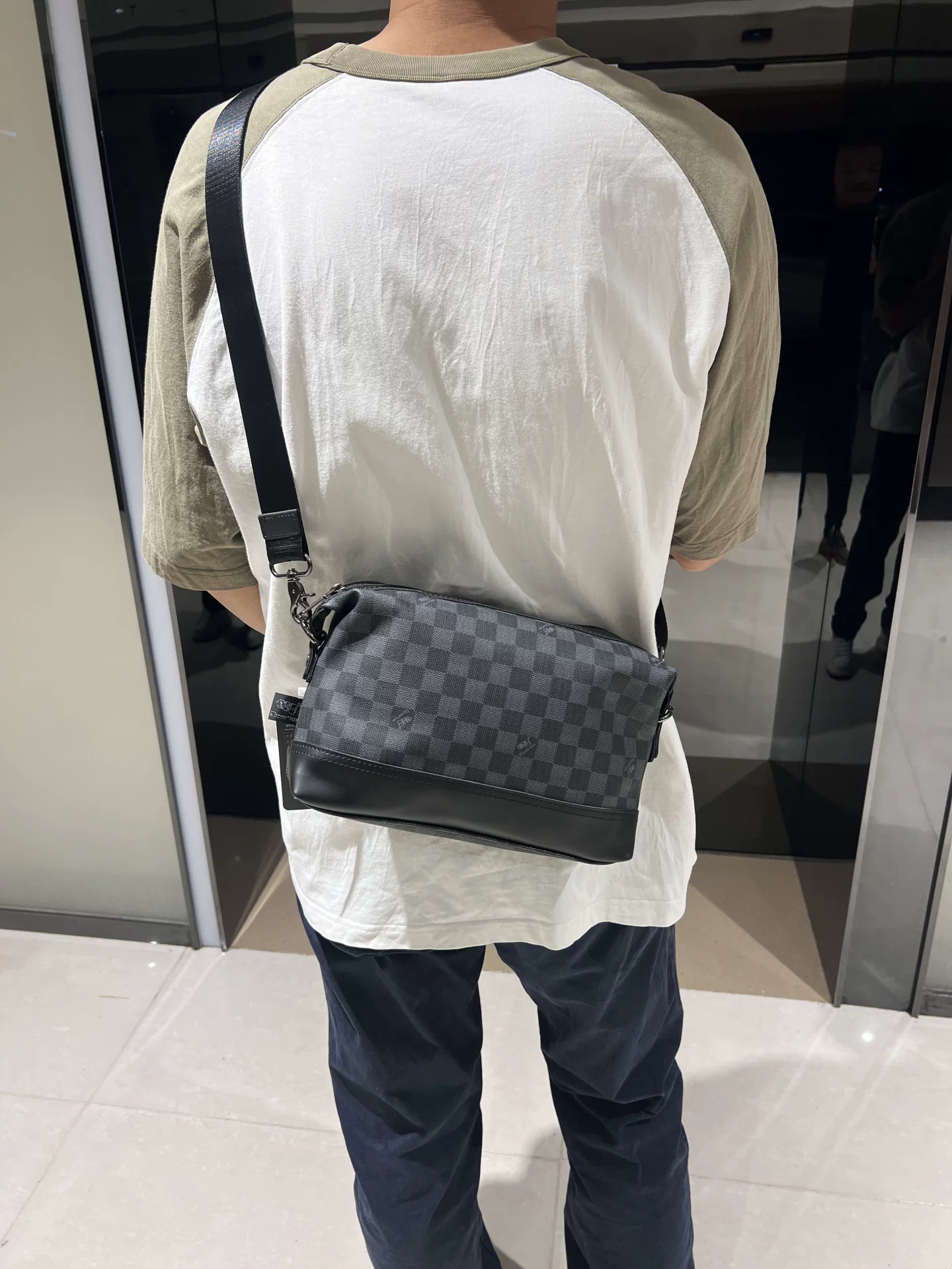 - Túi đeo chéo ba ngăn kiểu dáng giản dị dành cho nam, túi đeo vai kẻ caro, túi vuông kiểu doanh nhân, túi cầm tay thời trang trẻ trung