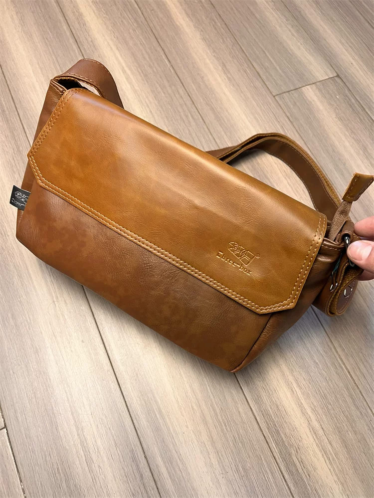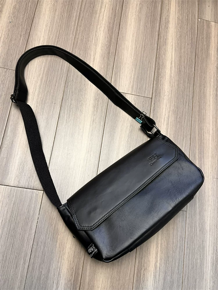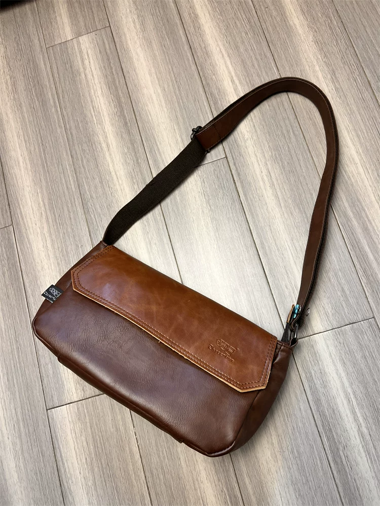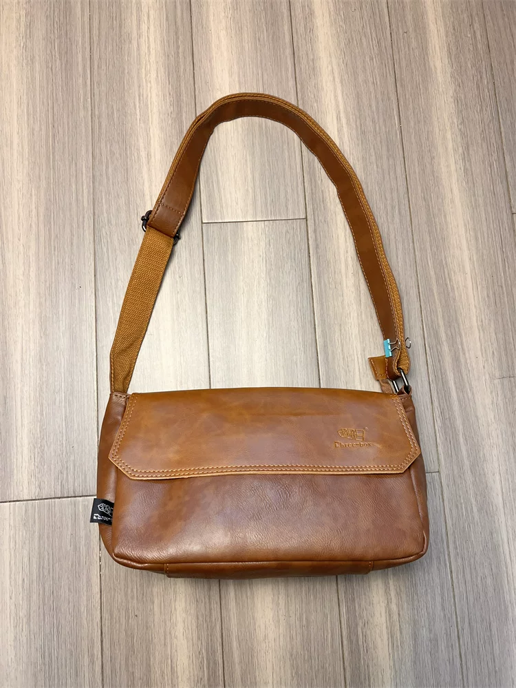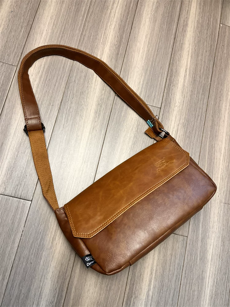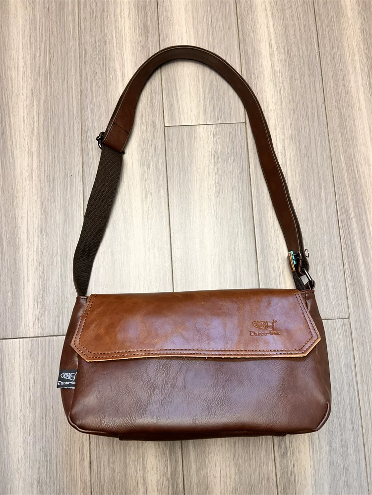 - Túi đeo chéo ba ngăn kiểu Trung Quốc dành cho nam giới Nhật Bản, chất liệu da thật, kiểu dáng giản dị, unisex, balo nhỏ