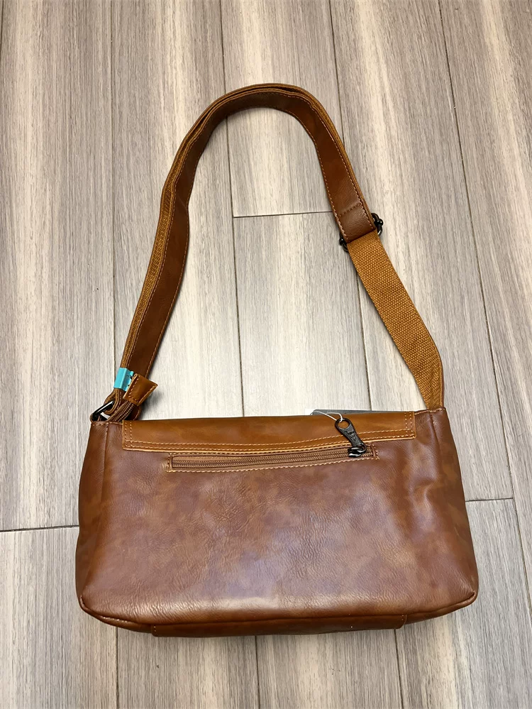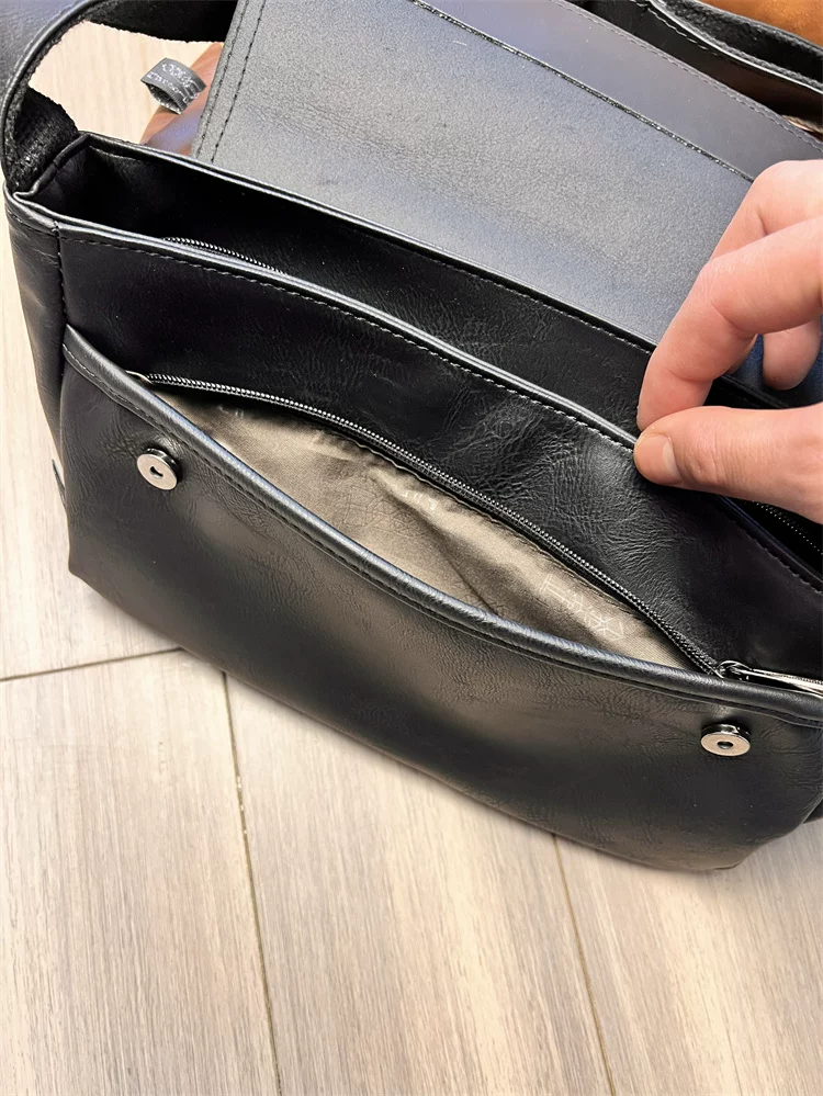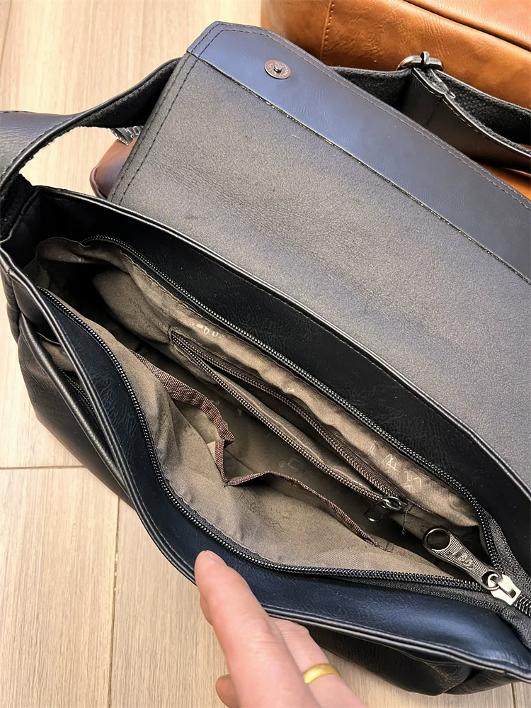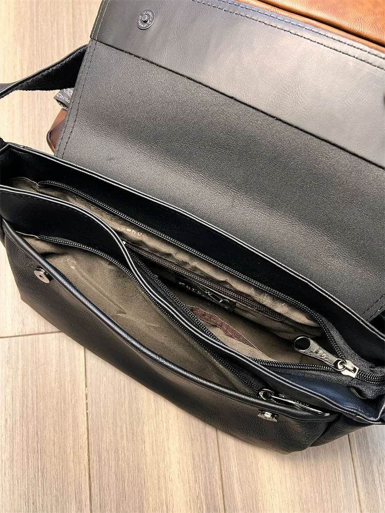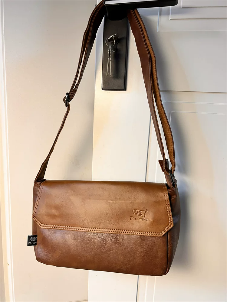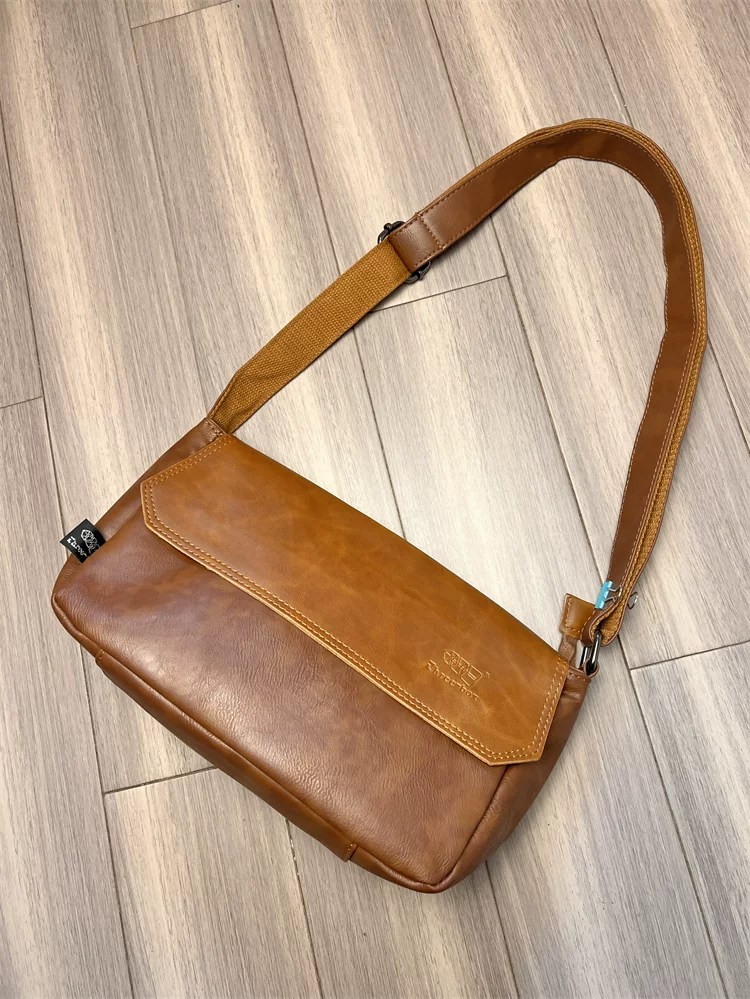 - Túi đeo chéo ba ngăn kiểu Trung Quốc dành cho nam giới Nhật Bản, chất liệu da thật, kiểu dáng giản dị, unisex, balo nhỏ