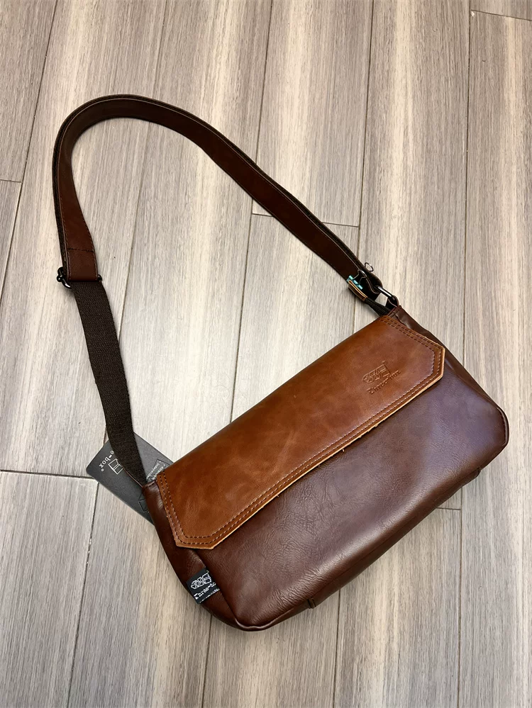 Túi đeo chéo ba ngăn kiểu Trung Quốc dành cho nam giới Nhật Bản, chất liệu da thật, kiểu dáng giản dị, unisex, balo nhỏ