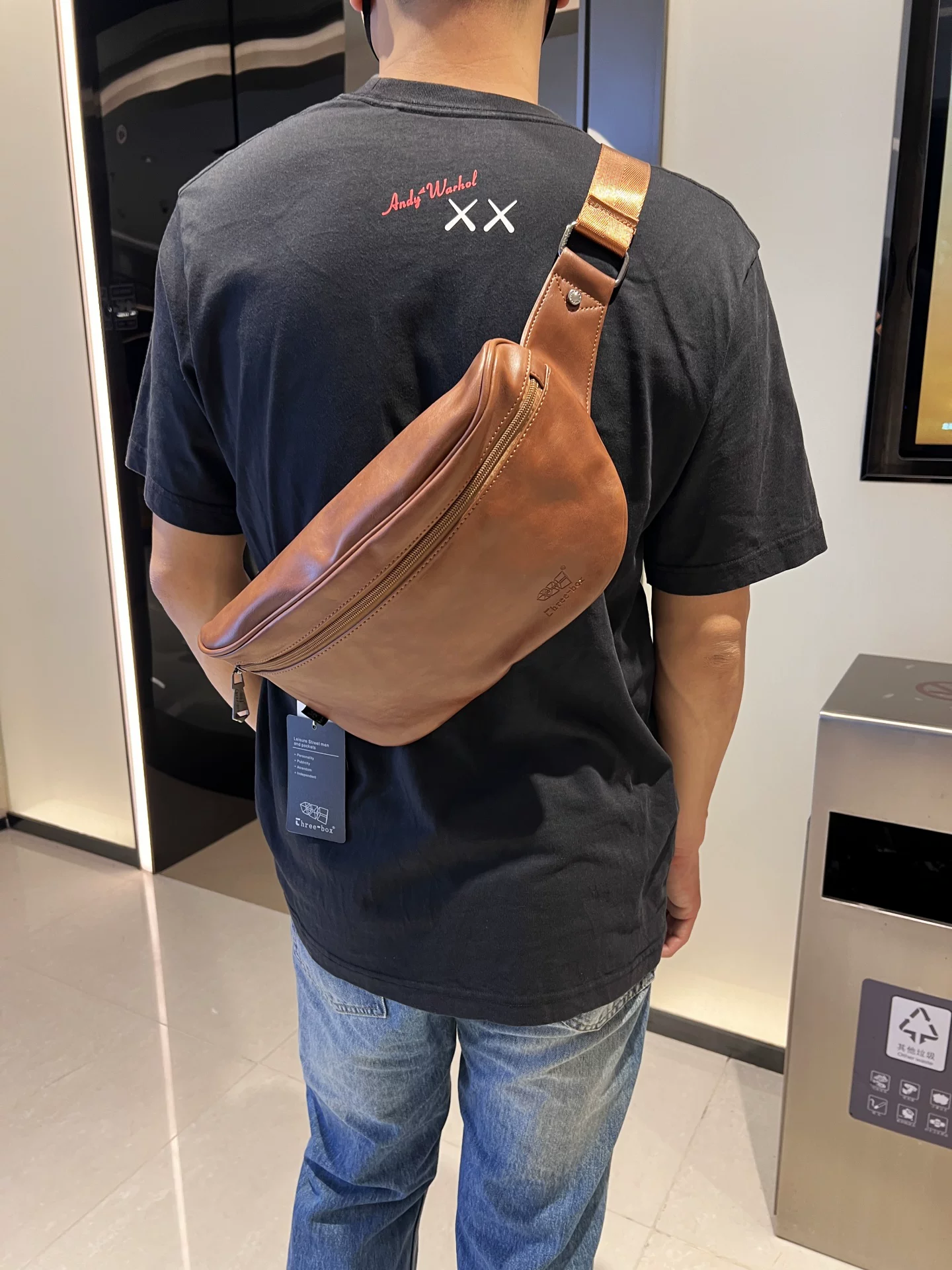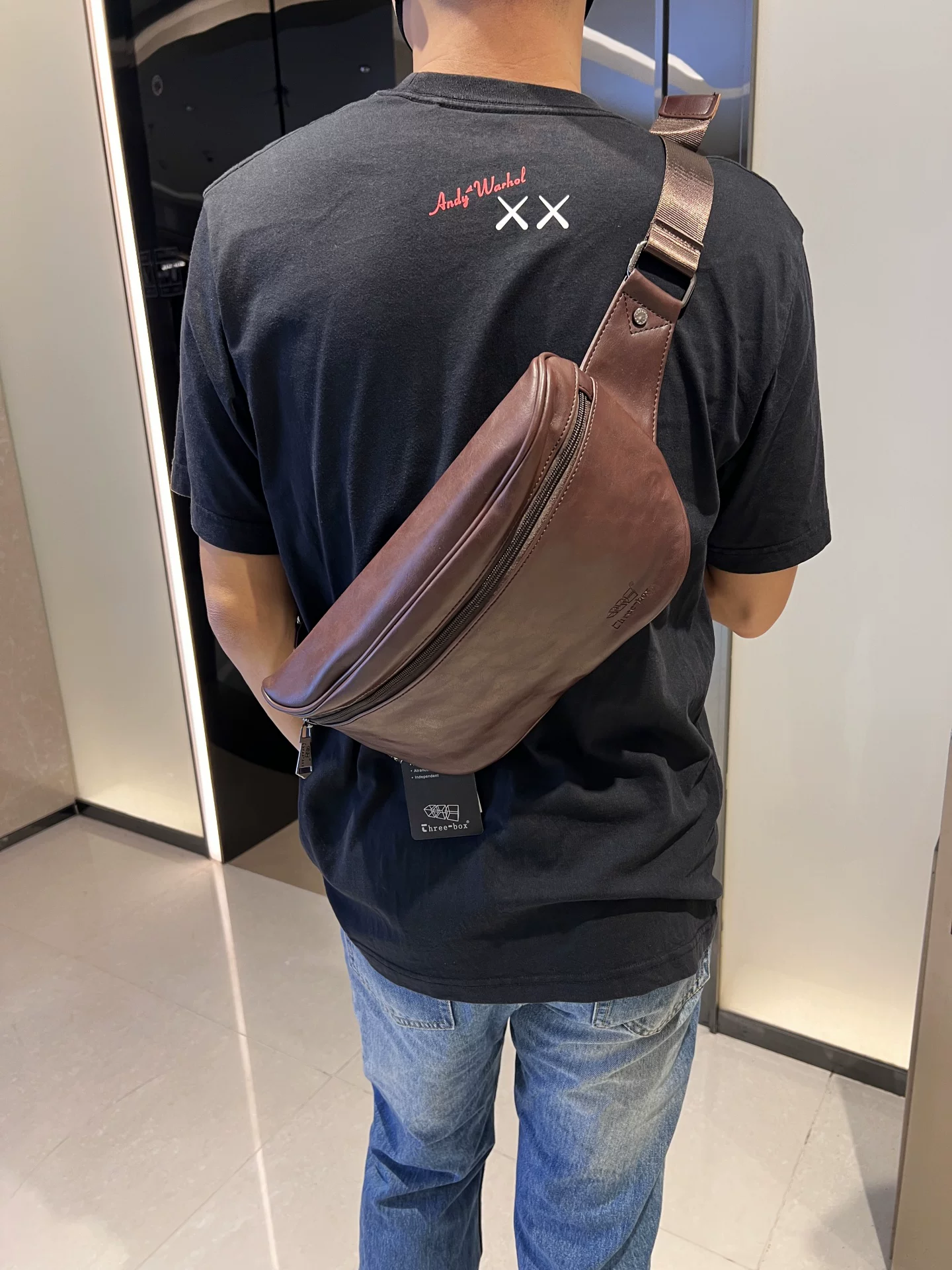 - Túi đeo chéo ba ngăn phong cách Hàn Quốc bằng da mềm sức chứa lớn dành cho nam giới phong cách retro đa chức năng túi đeo thắt lưng túi đeo chéo một vai
