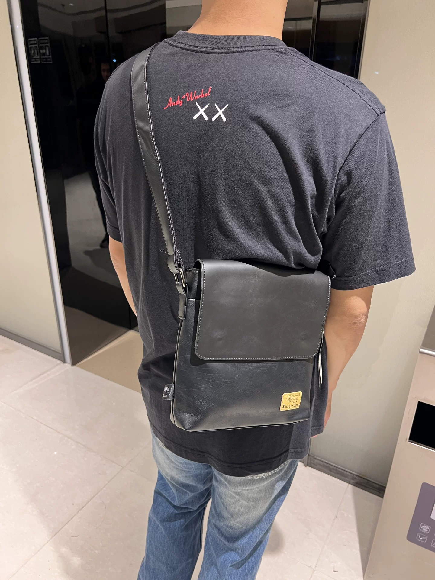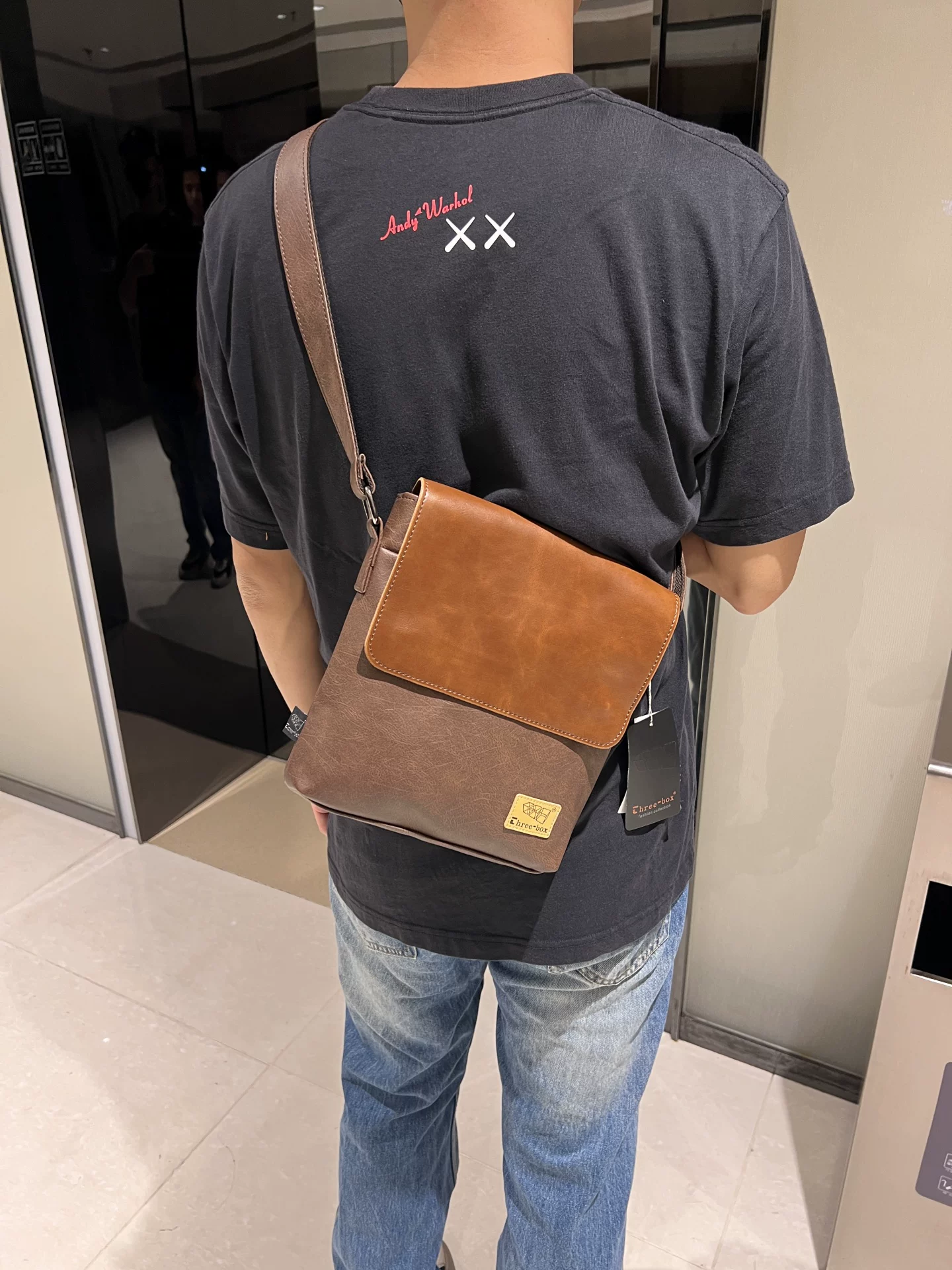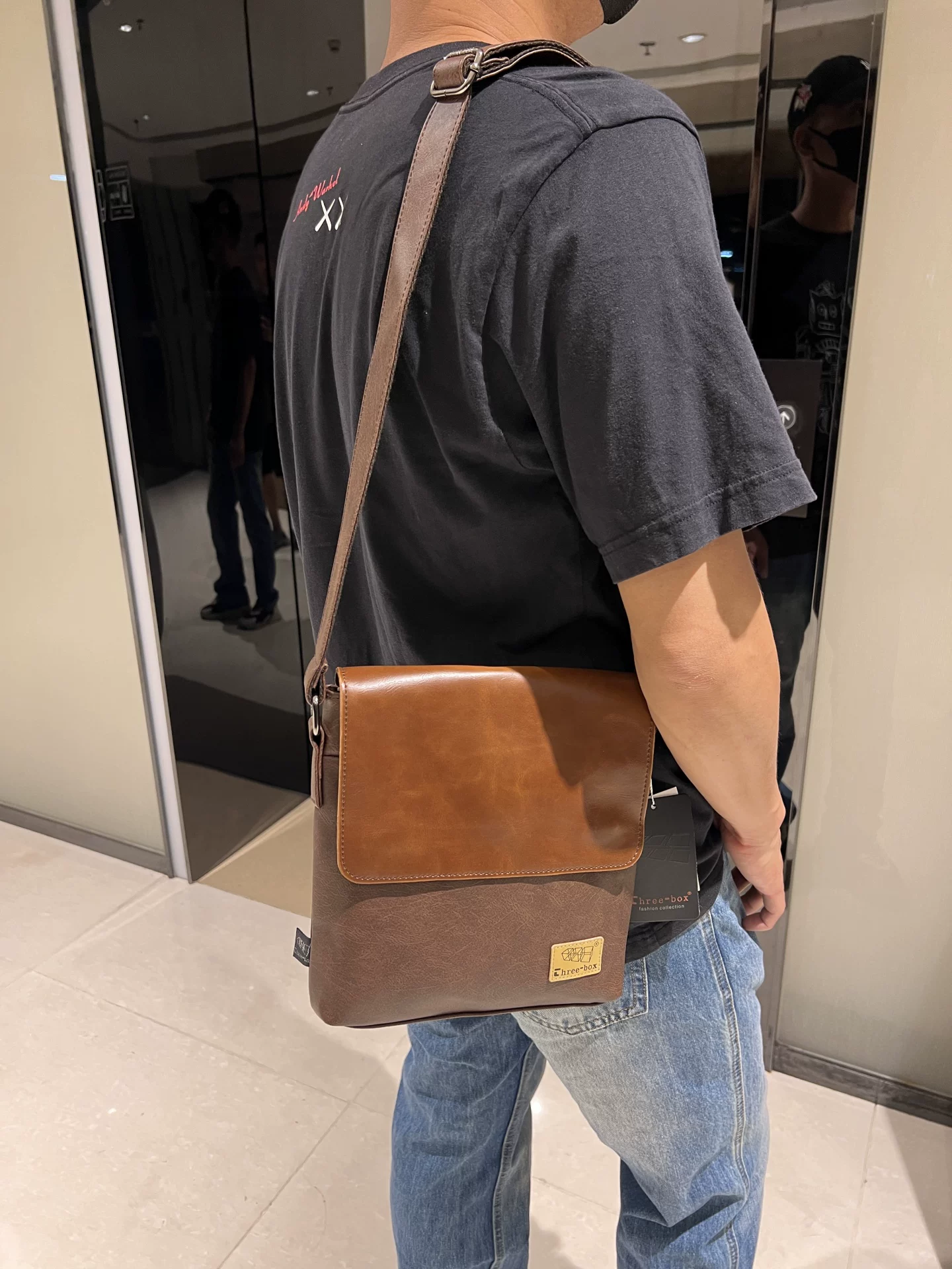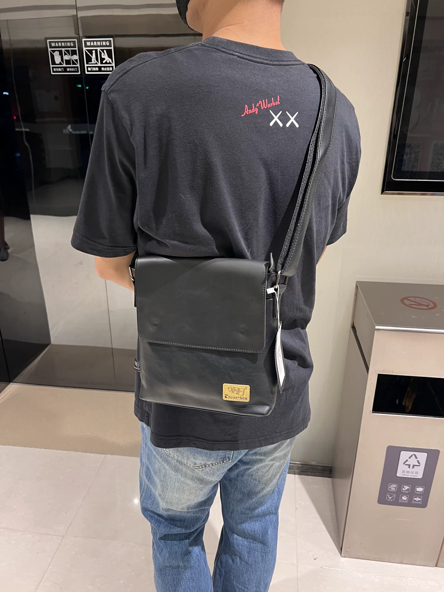 - Túi đeo chéo ba ngăn phong cách Hàn Quốc chất liệu da thật dành cho nam, túi đeo vai dọc, ba lô xách tay phong cách Anh Quốc dành cho nam và nữ