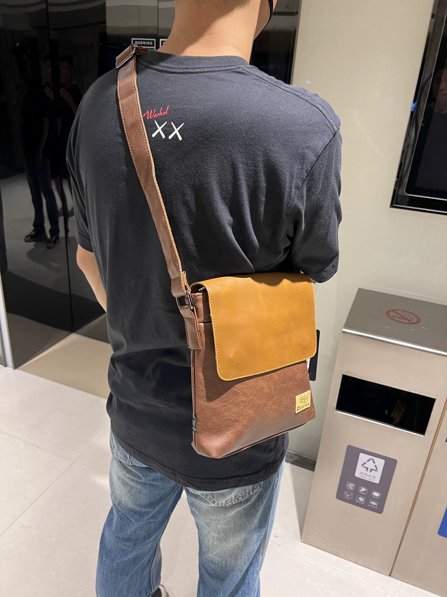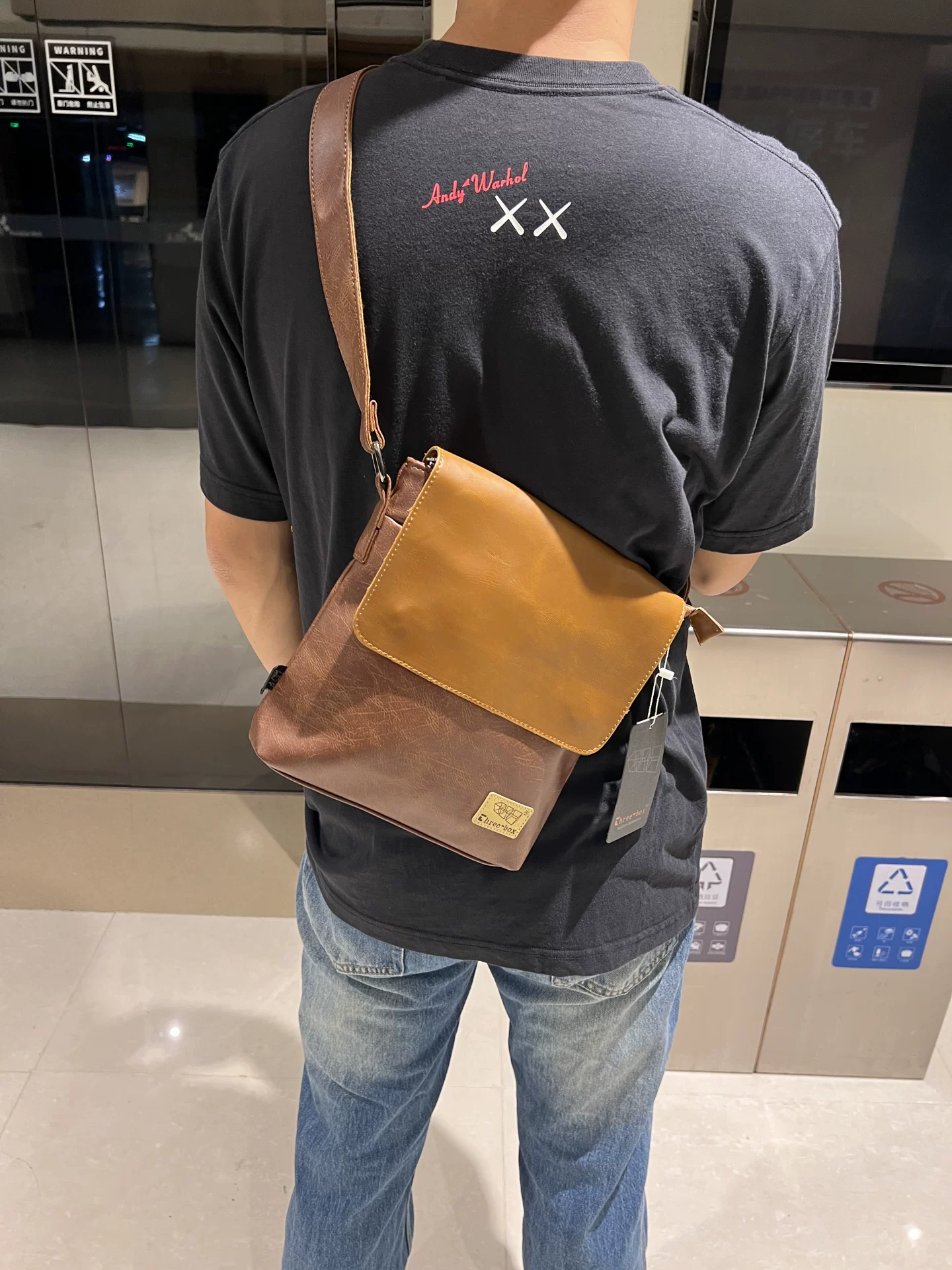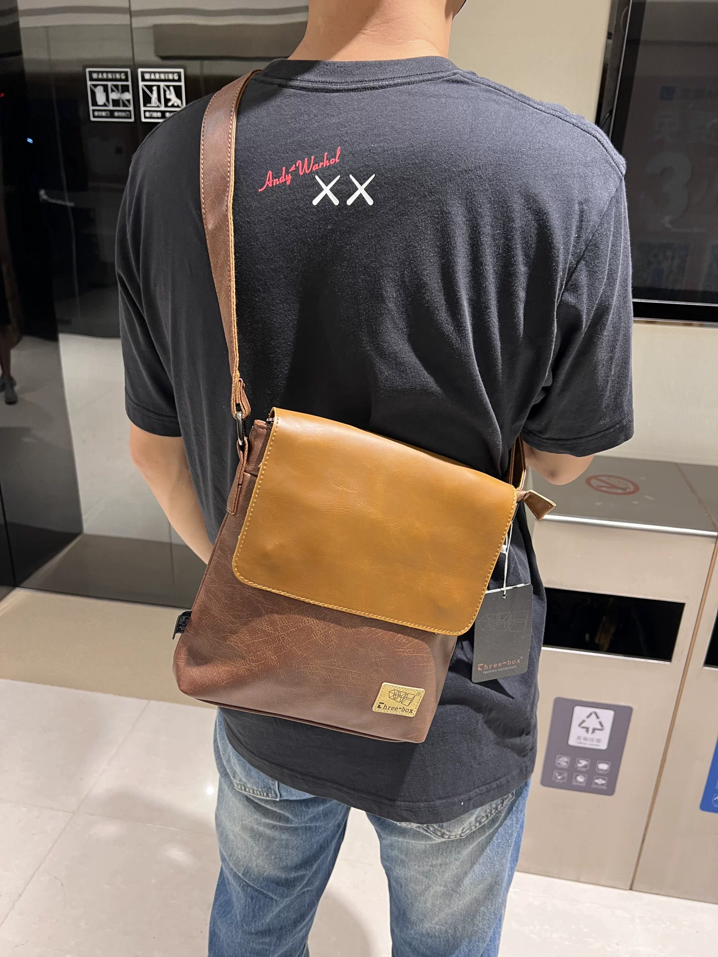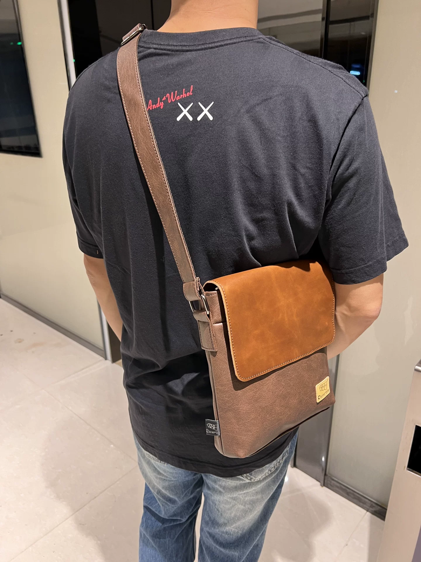 - Túi đeo chéo ba ngăn phong cách Hàn Quốc chất liệu da thật dành cho nam, túi đeo vai dọc, ba lô xách tay phong cách Anh Quốc dành cho nam và nữ