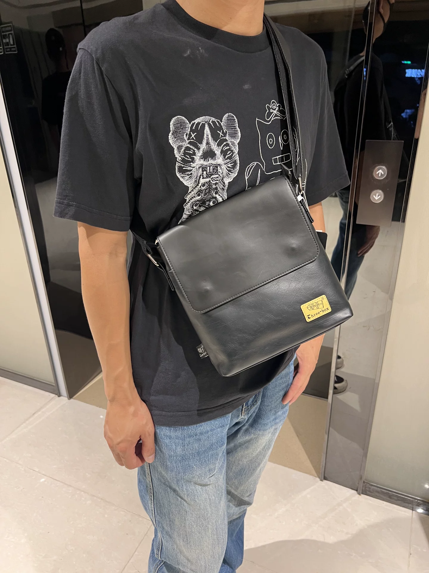Túi đeo chéo ba ngăn phong cách Hàn Quốc chất liệu da thật dành cho nam, túi đeo vai dọc, ba lô xách tay phong cách Anh Quốc dành cho nam và nữ