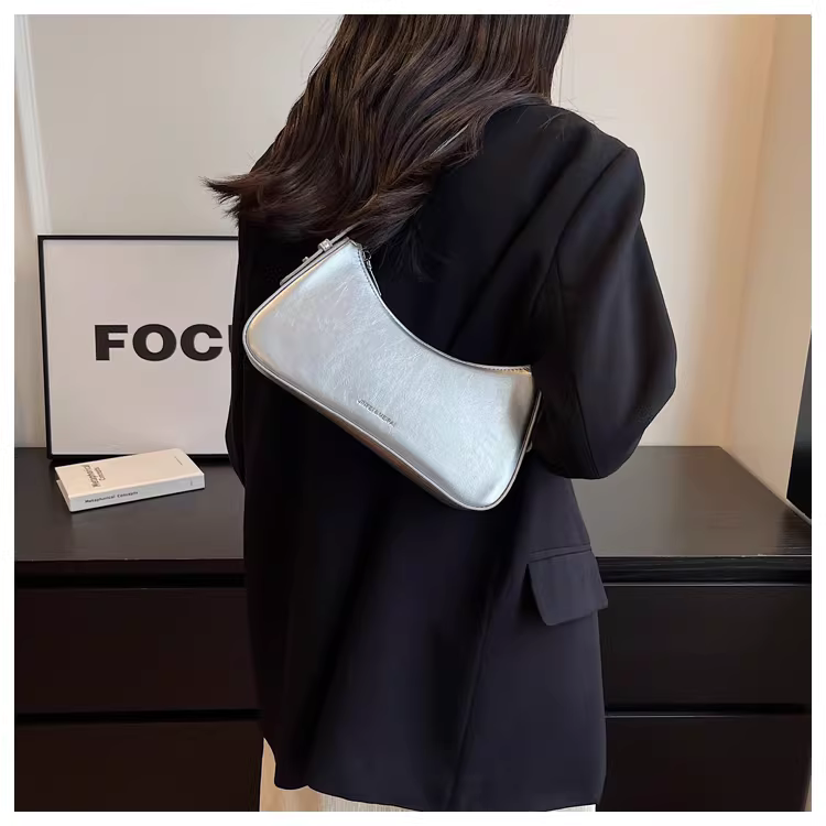 - Túi đeo chéo bạc nữ 2025 kiểu Pháp cao cấp mùa thu đông, phong cách nhỏ nhắn, thời thượng, túi baguette