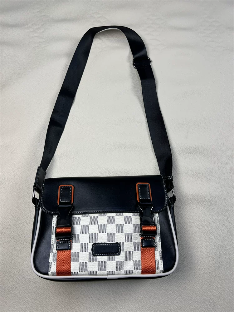 Túi đeo chéo kẻ caro thời trang mới 2024, túi nam thời thượng, túi đeo vai kiểu messenger, balo nắp gập đi xe máy