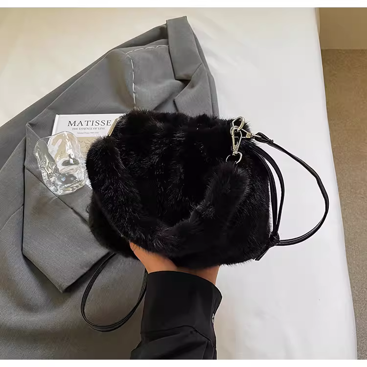 - Túi đeo chéo lông mềm mại dành cho nữ, thiết kế độc đáo thu đông 2025, túi xô lông thú thời thượng năm nay.