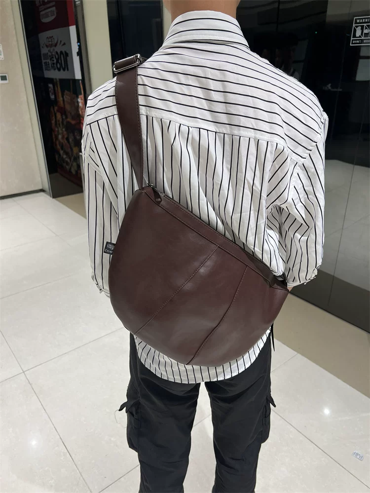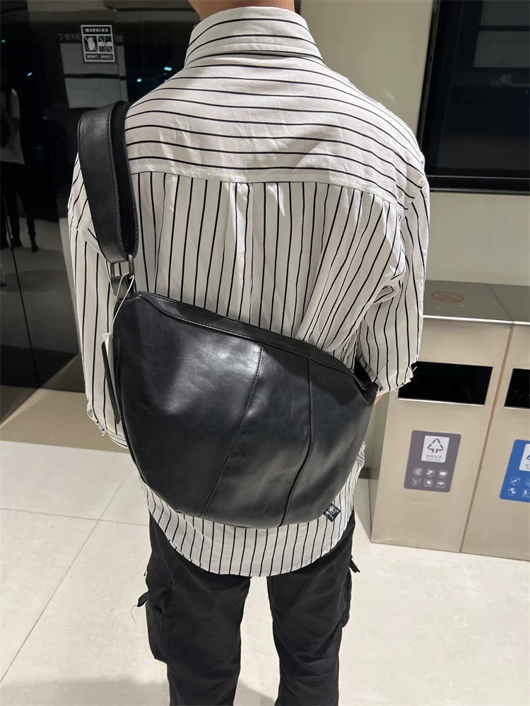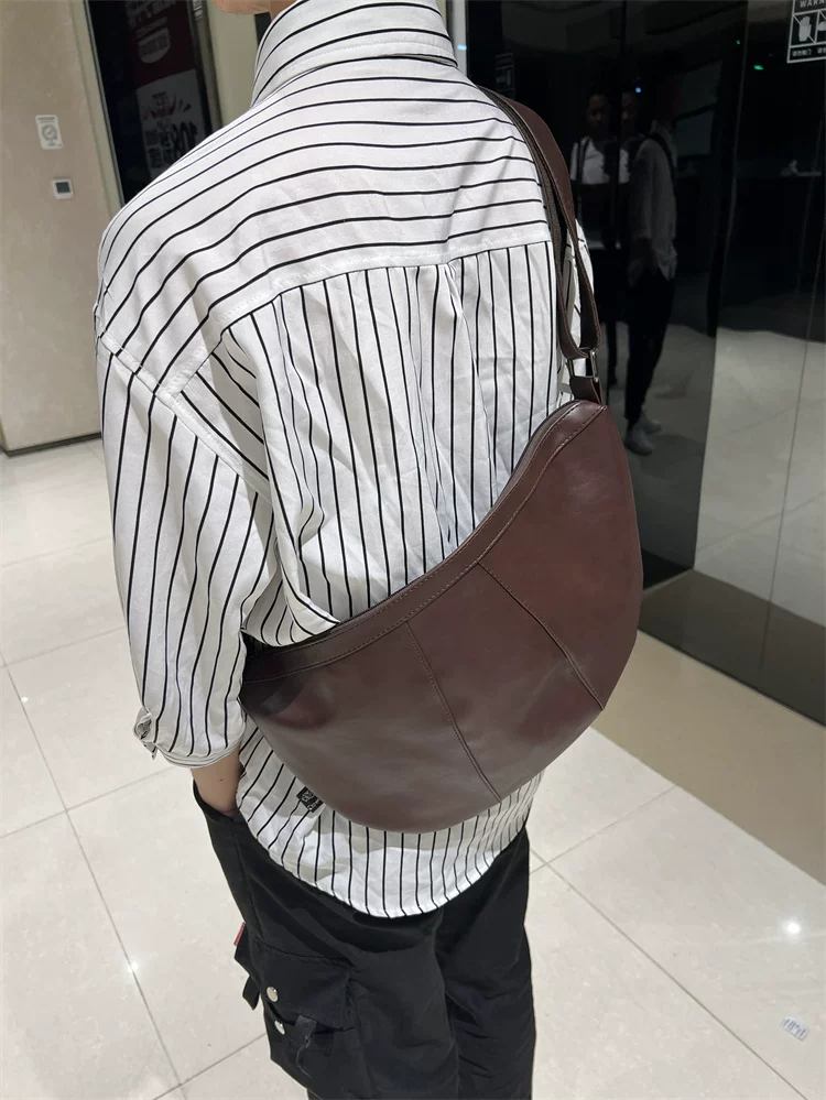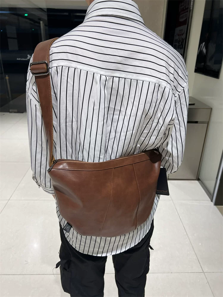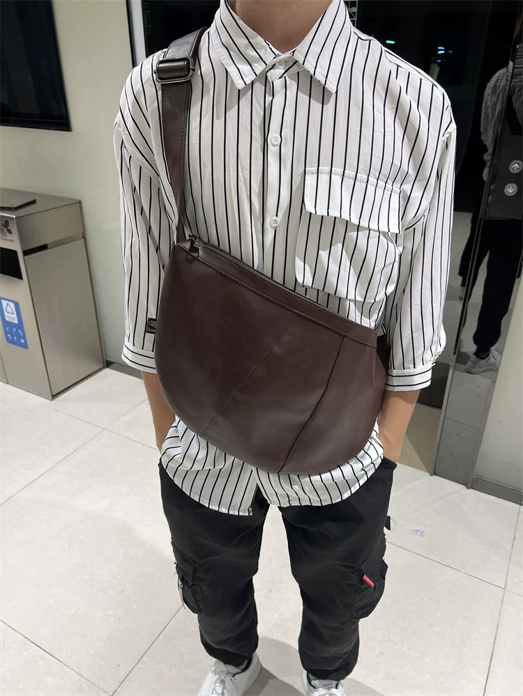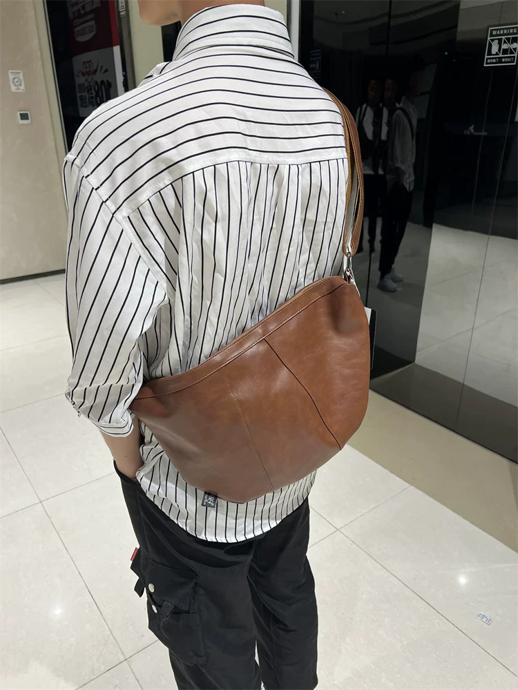 - Túi đeo chéo nam 2024 mới, túi bánh bao da mềm sọc phong cách Nhật Bản và Hàn Quốc, túi đeo vai nữ thời trang đơn giản