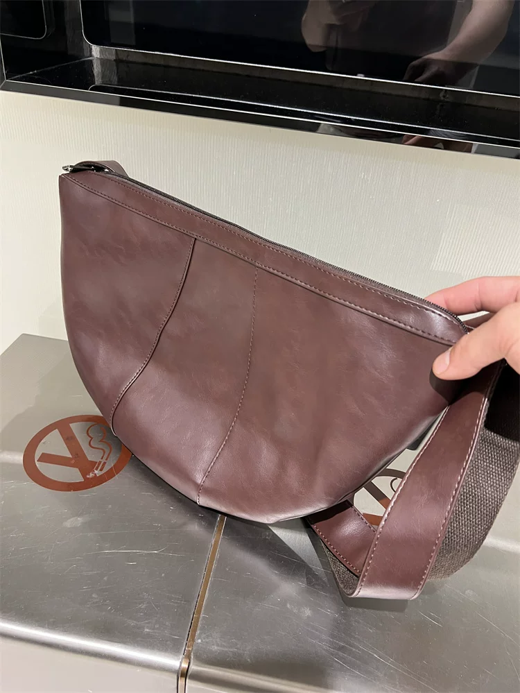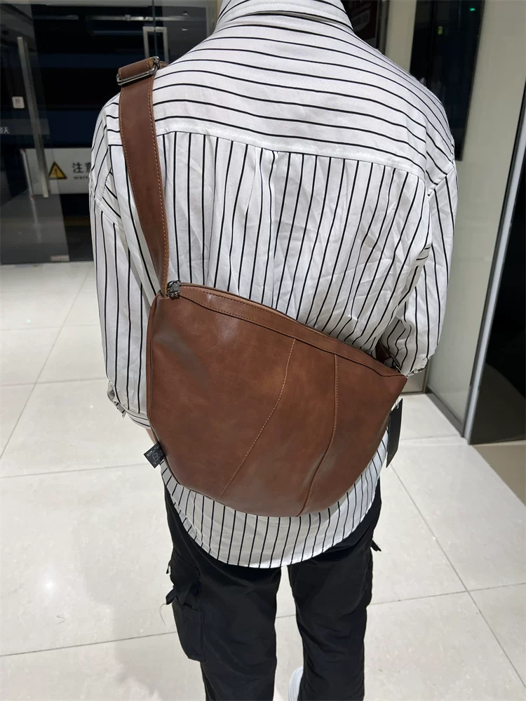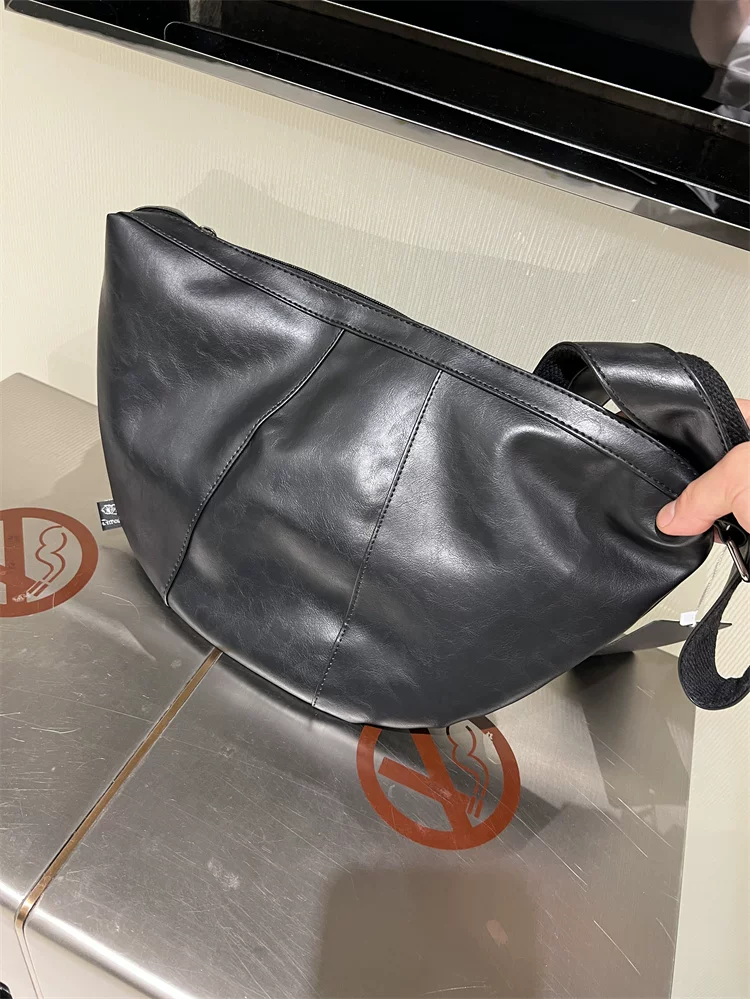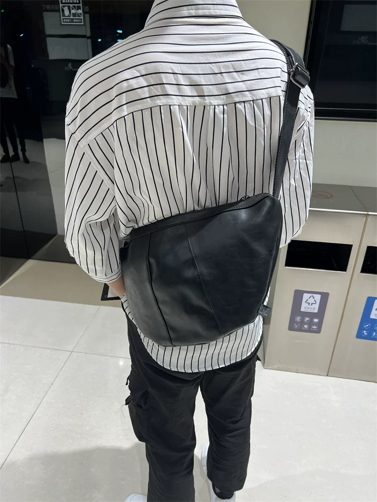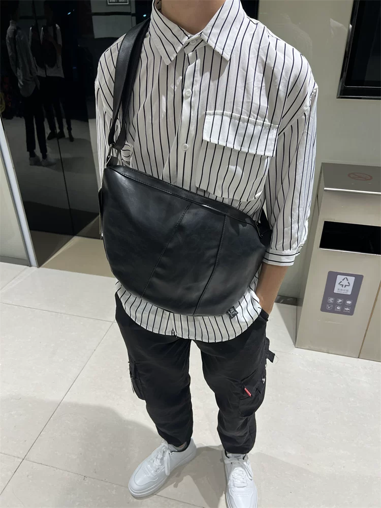 - Túi đeo chéo nam 2024 mới, túi bánh bao da mềm sọc phong cách Nhật Bản và Hàn Quốc, túi đeo vai nữ thời trang đơn giản