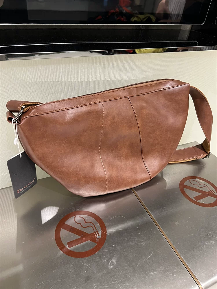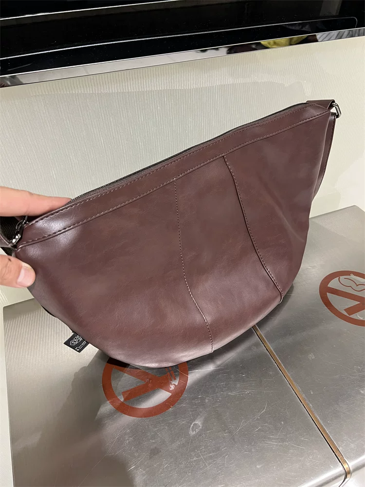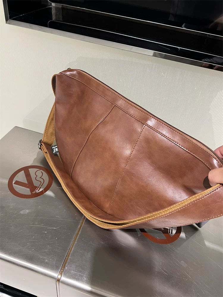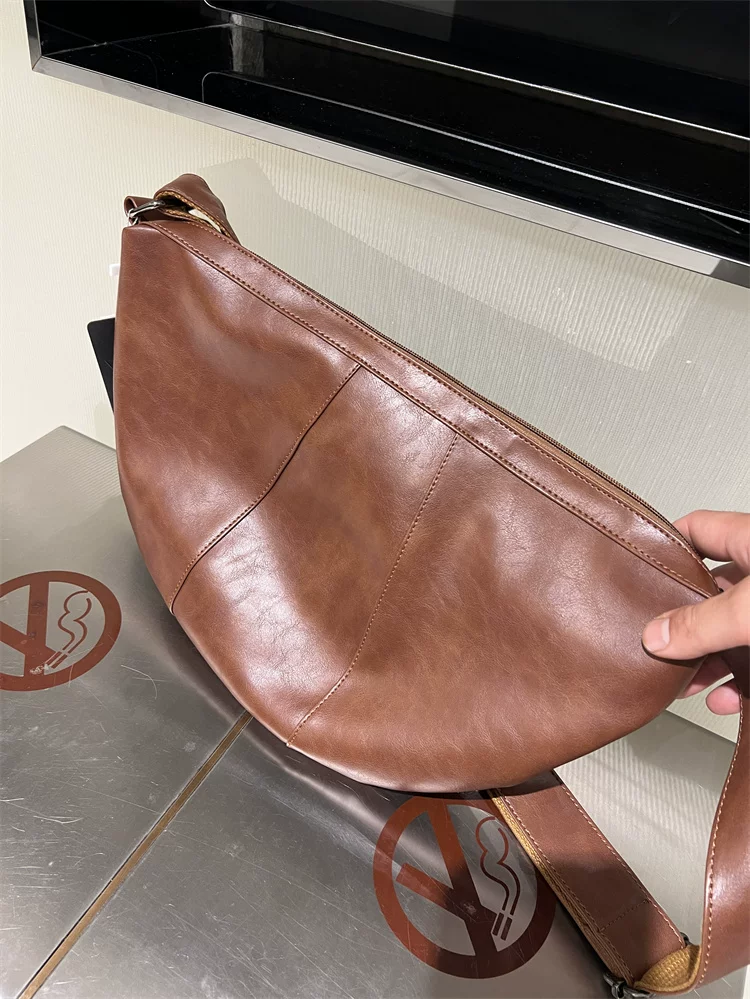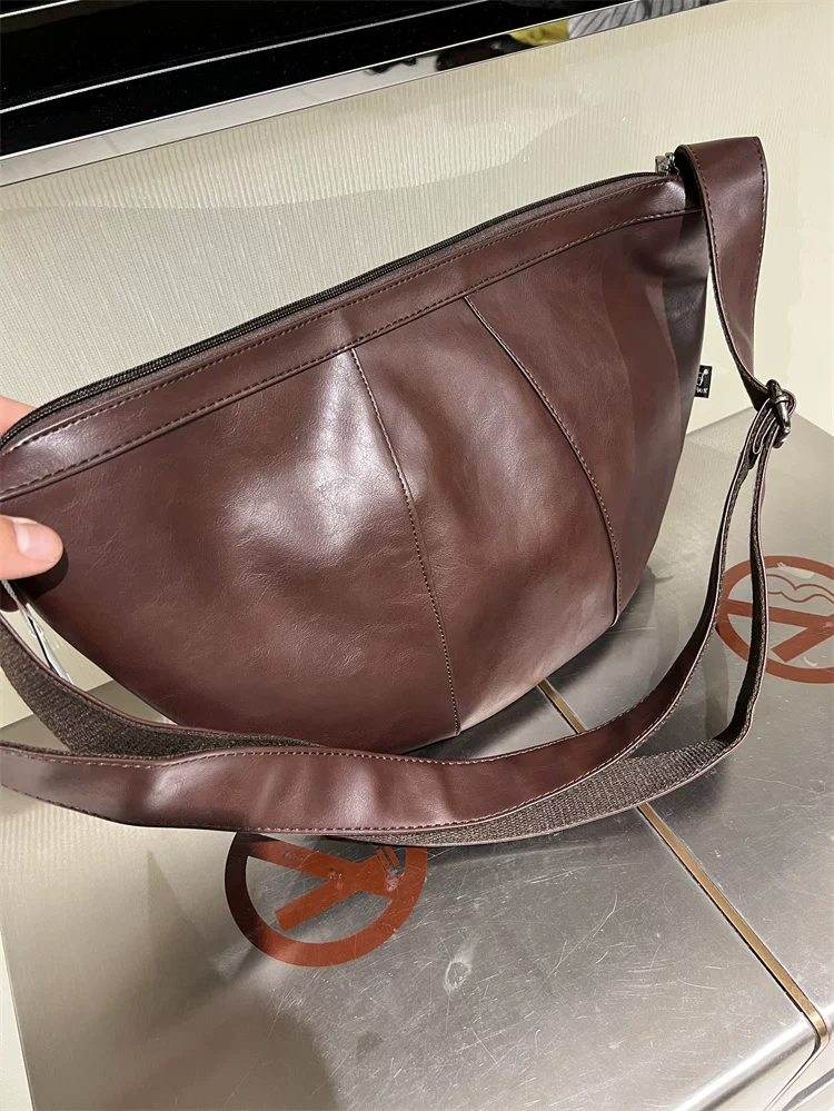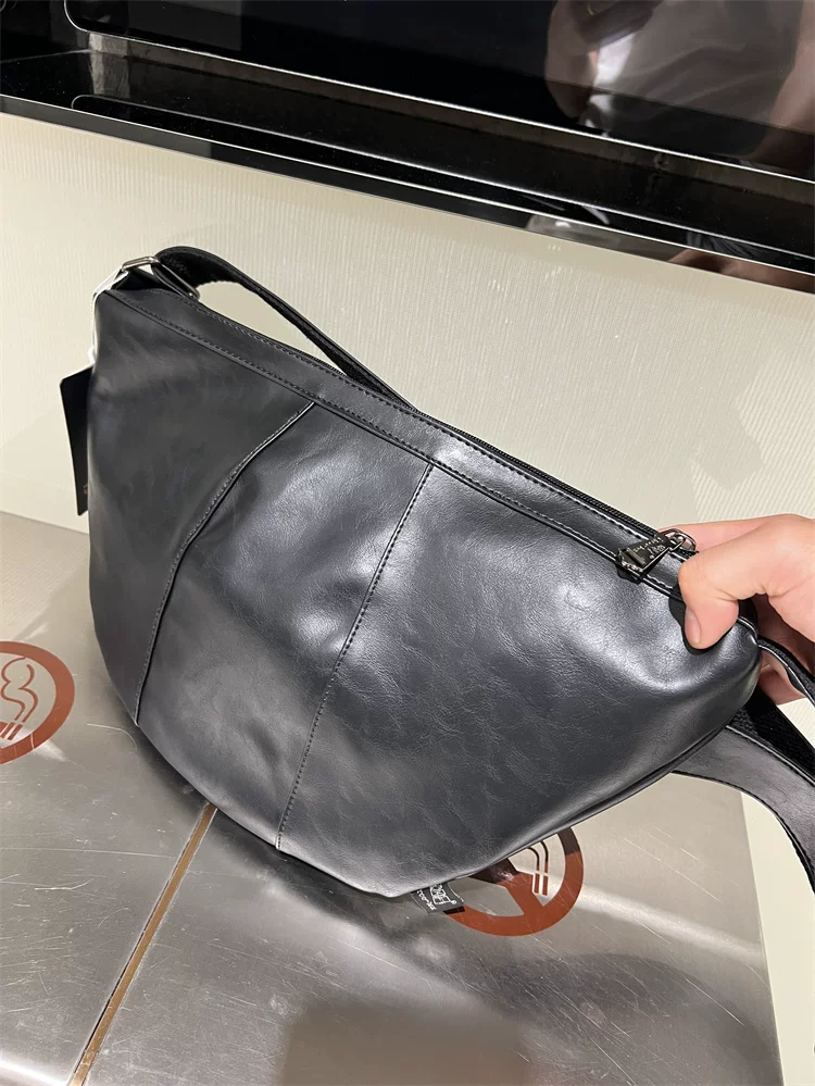 - Túi đeo chéo nam 2024 mới, túi bánh bao da mềm sọc phong cách Nhật Bản và Hàn Quốc, túi đeo vai nữ thời trang đơn giản