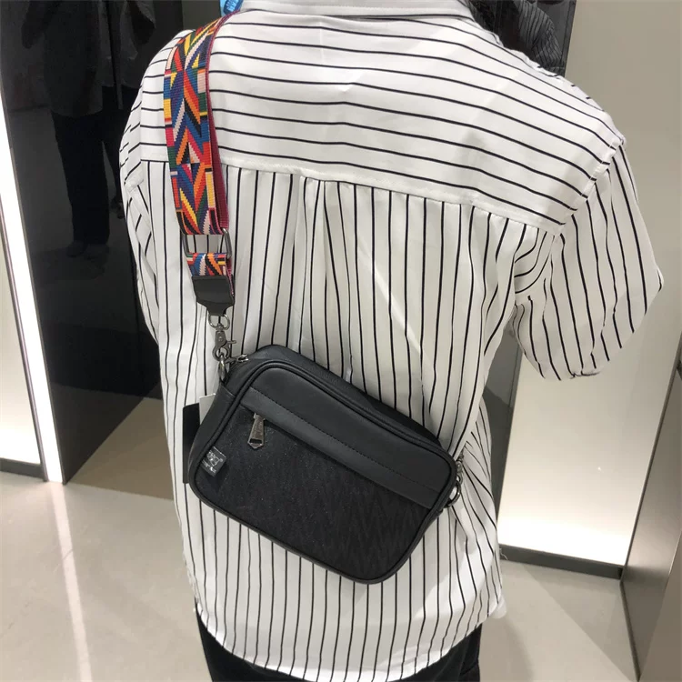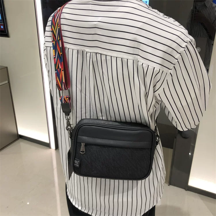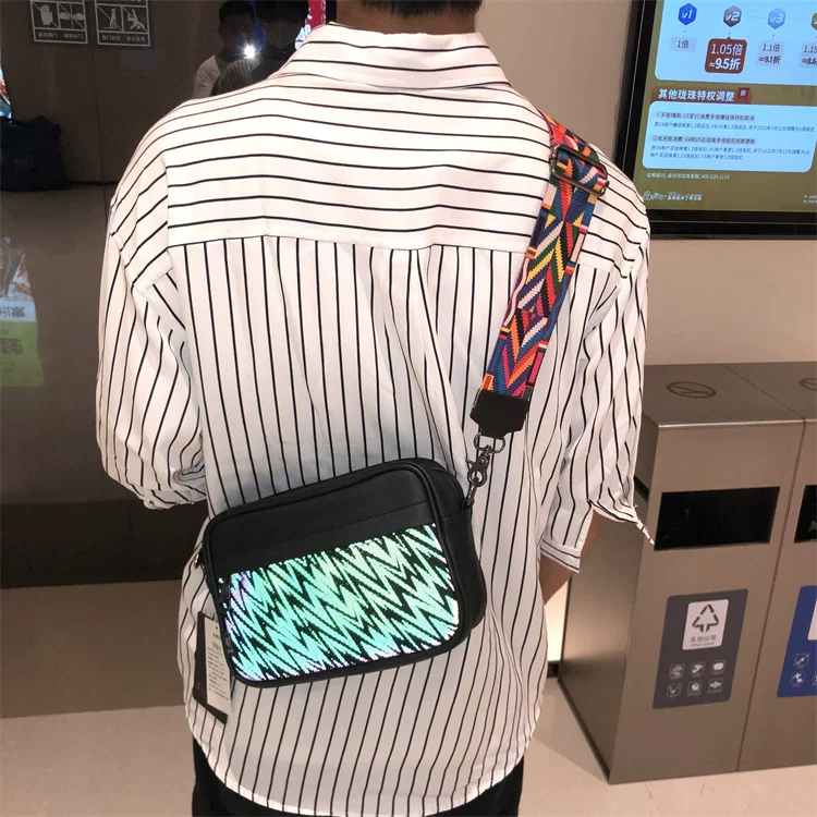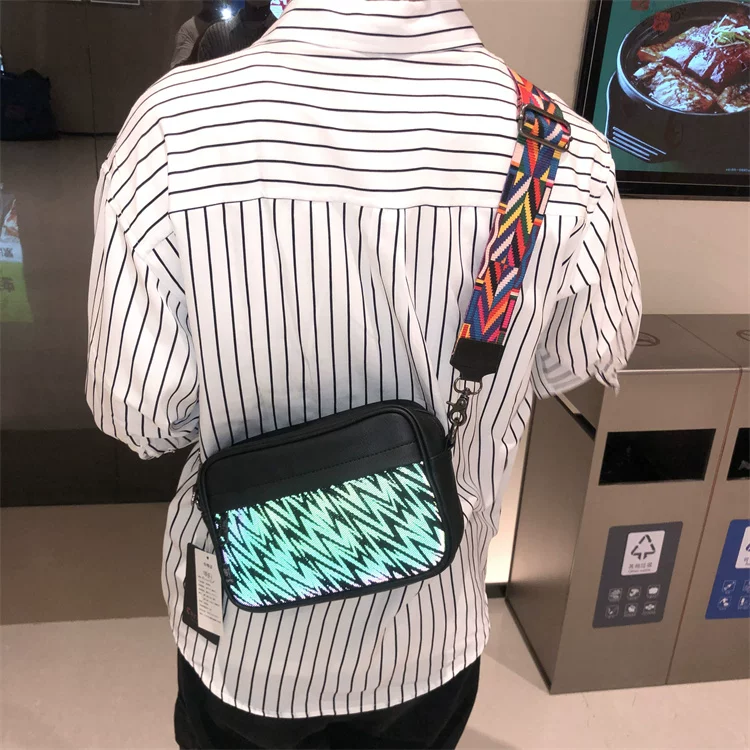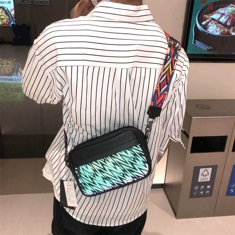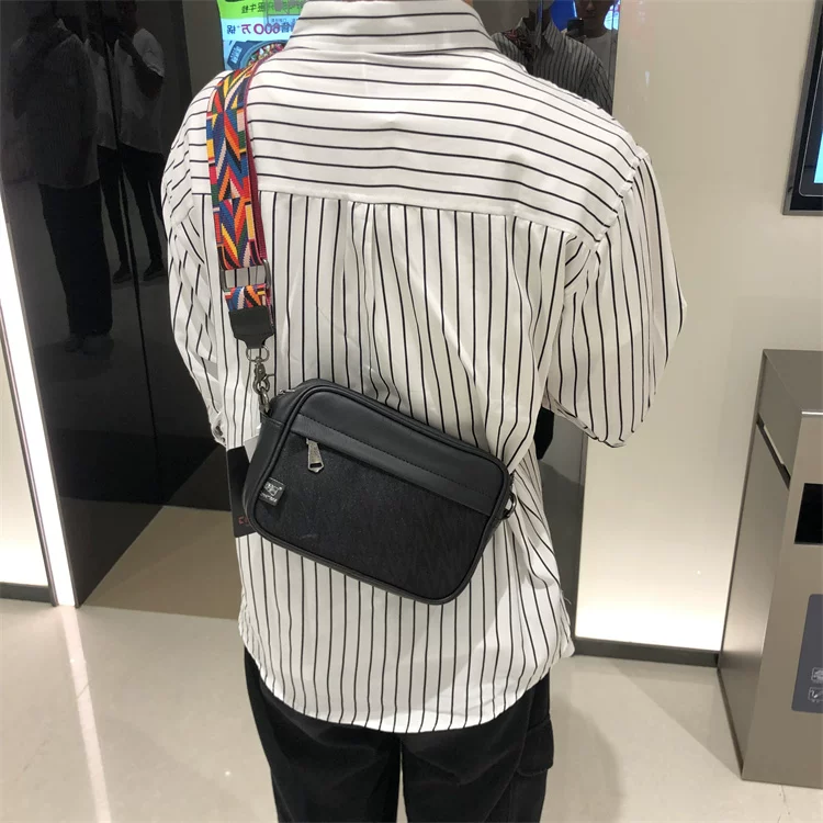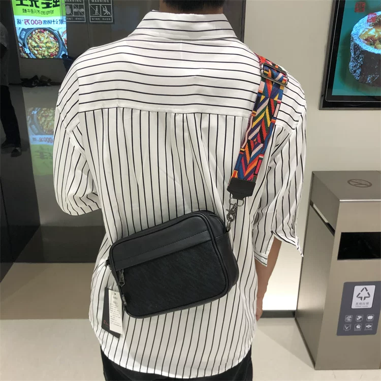 - Túi đeo chéo nam sọc thời trang Nhật Bản và Hàn Quốc ba ngăn, phong cách hip-hop, unisex, chất liệu PU thời trang