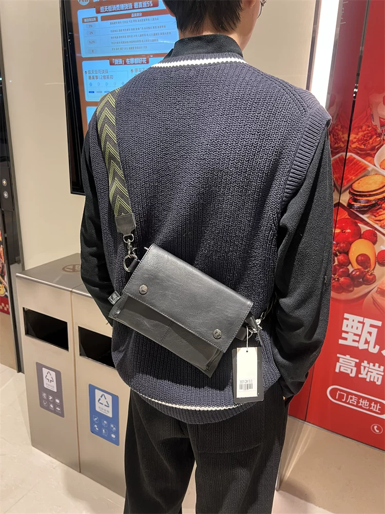 Túi đeo chéo nam thời trang 2024, phong cách đường phố cá tính, unisex, sọc, đựng điện thoại, thuốc lá