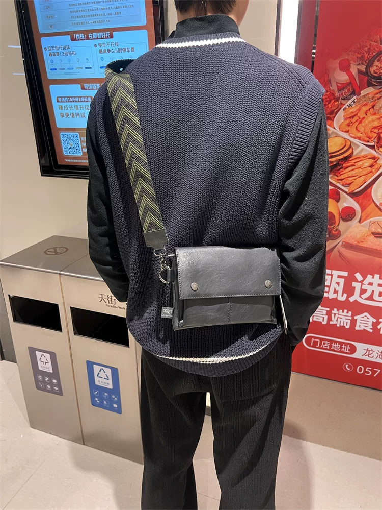 - Túi đeo chéo nam thời trang 2024, phong cách đường phố cá tính, unisex, sọc, đựng điện thoại, thuốc lá