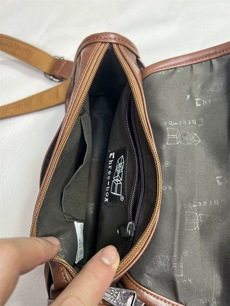 - Túi đeo chéo nam Threebox hợp thời trang phong cách Hàn Quốc và Nhật Bản Túi xách nam hợp thời trang phong cách retro giản dị có nắp đeo vai đơn ba lô đeo chéo nữ