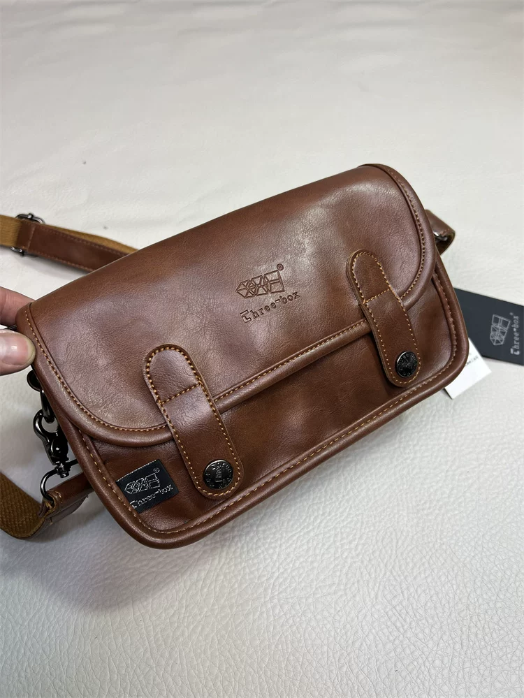 Túi đeo chéo nam Threebox hợp thời trang phong cách Hàn Quốc và Nhật Bản Túi xách nam hợp thời trang phong cách retro giản dị có nắp đeo vai đơn ba lô đeo chéo nữ