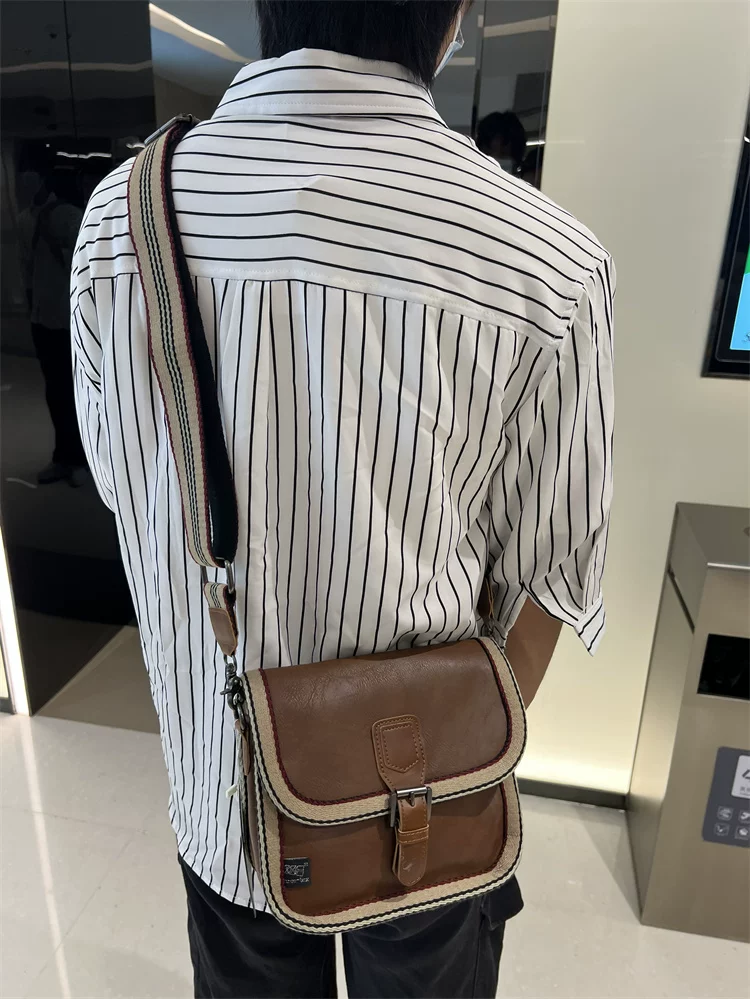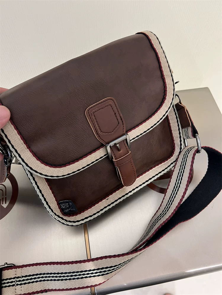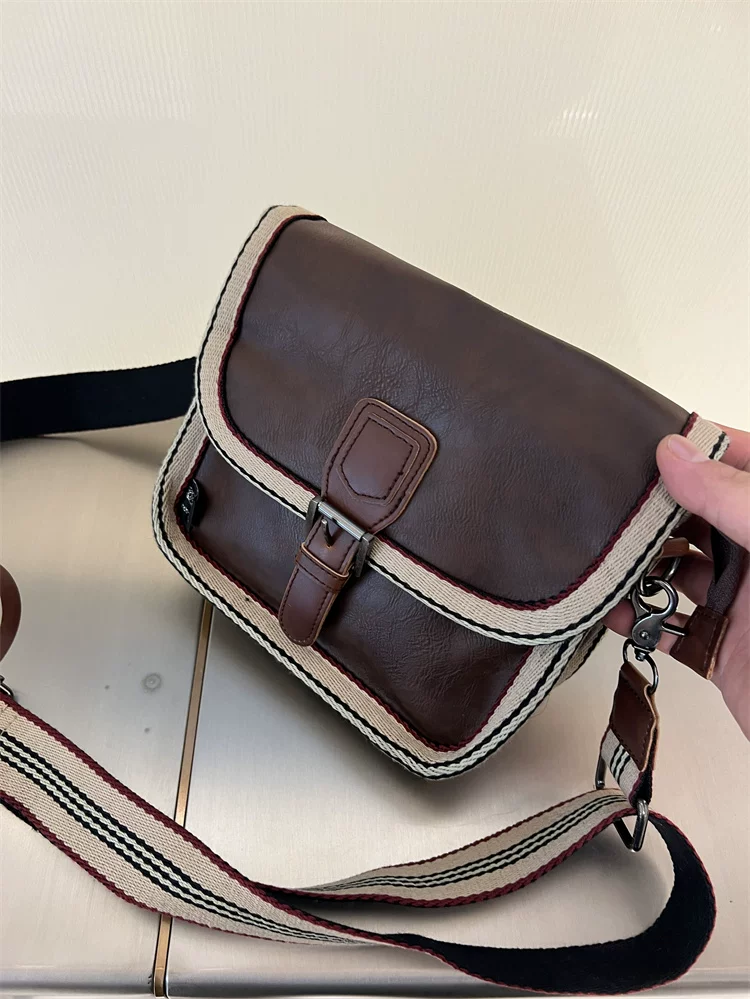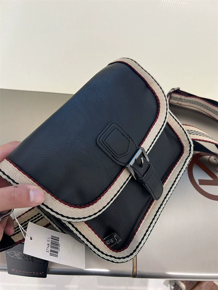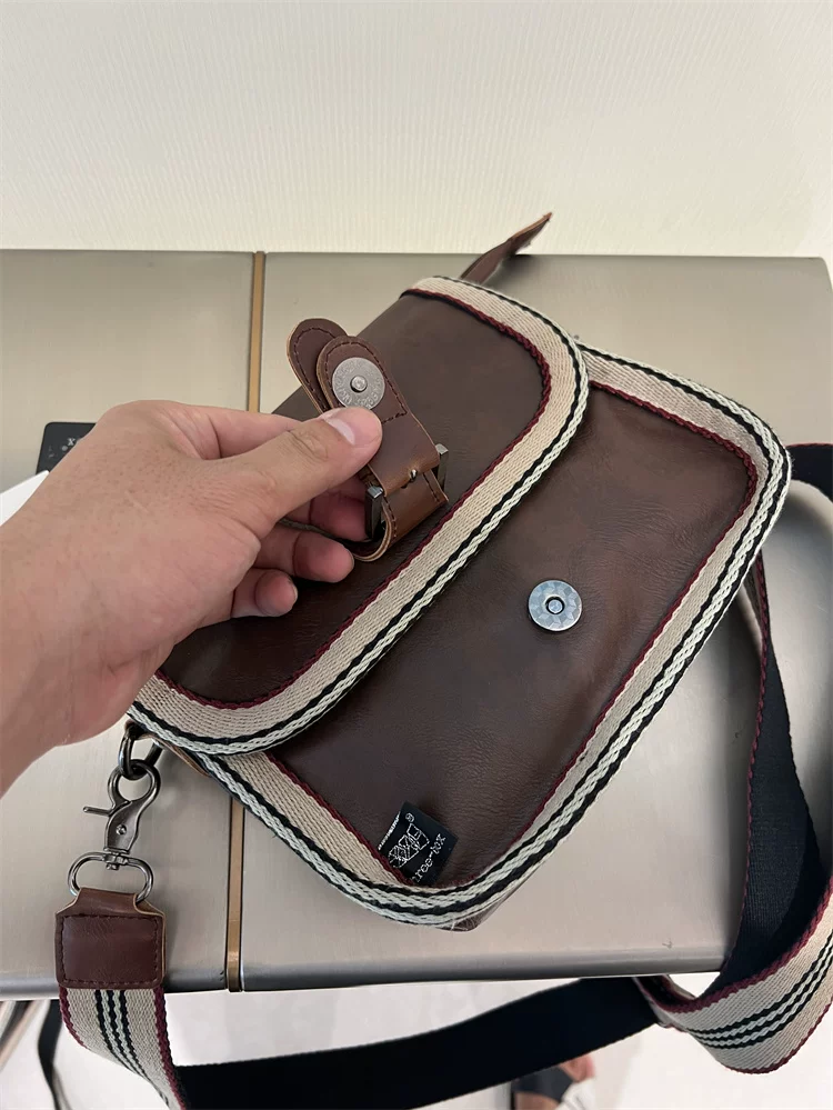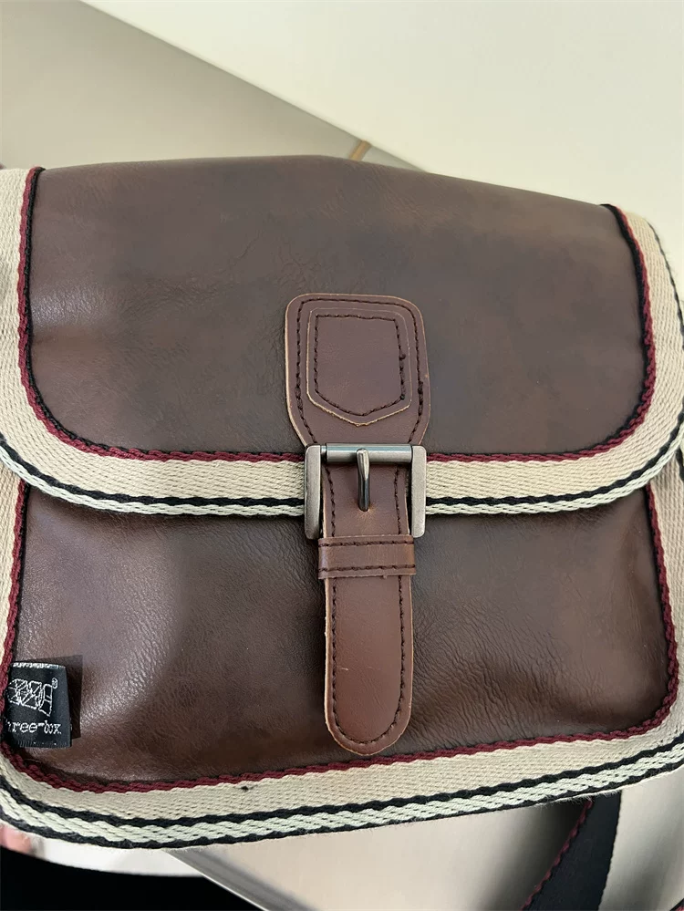 - Túi đeo chéo nhỏ sọc thời trang Threebox dành cho nam giới, phong cách retro giản dị, túi đeo vai bằng da mềm kiểu Nhật Bản và Hàn Quốc có khóa, túi xách nữ