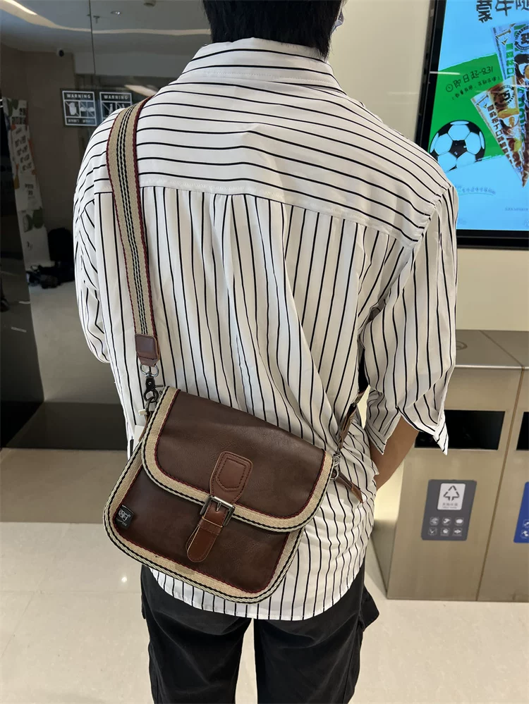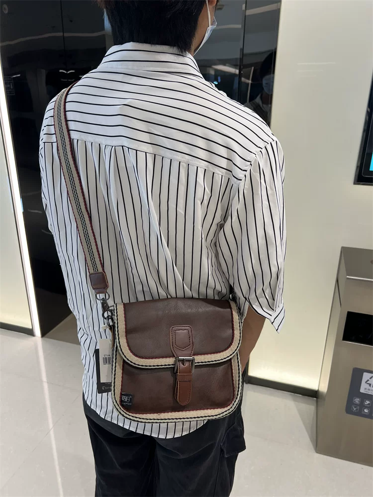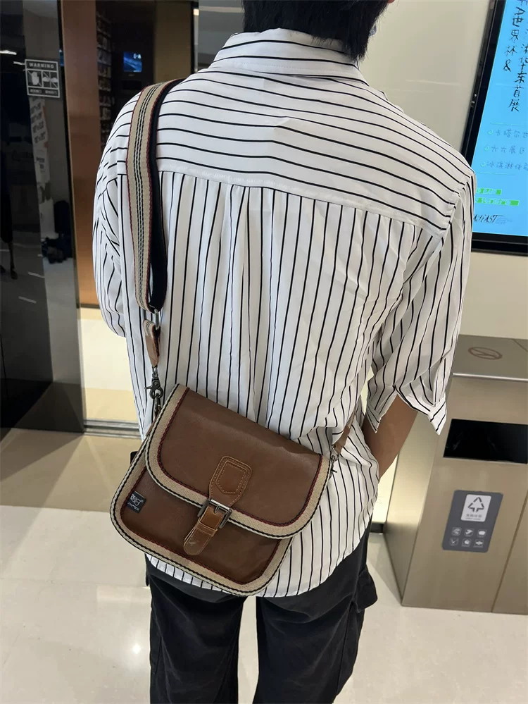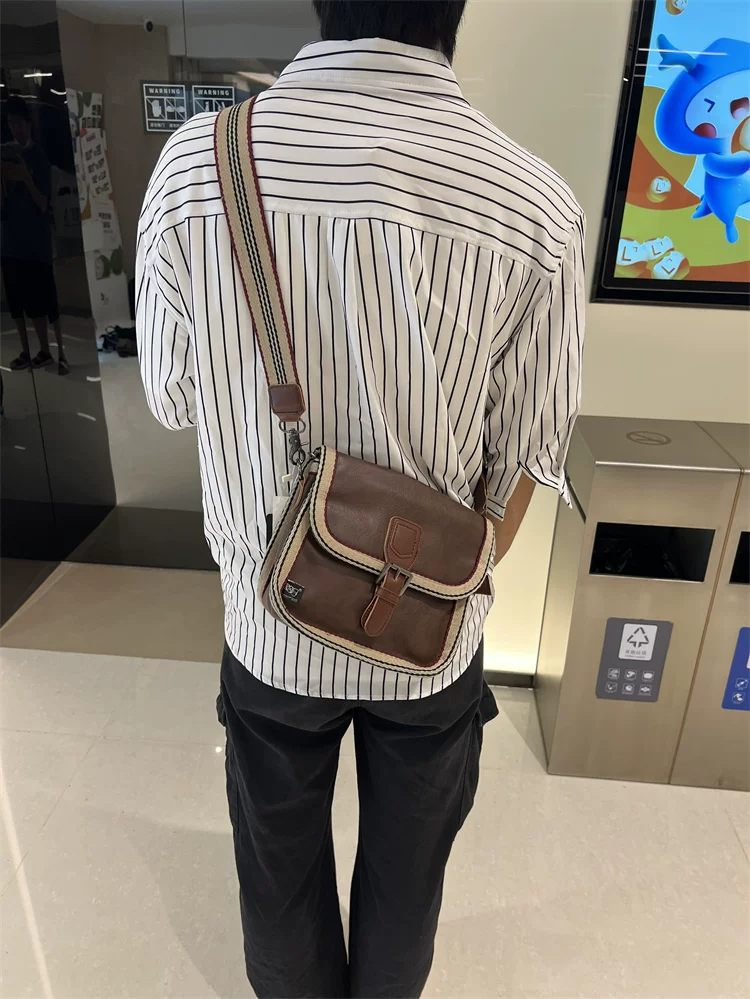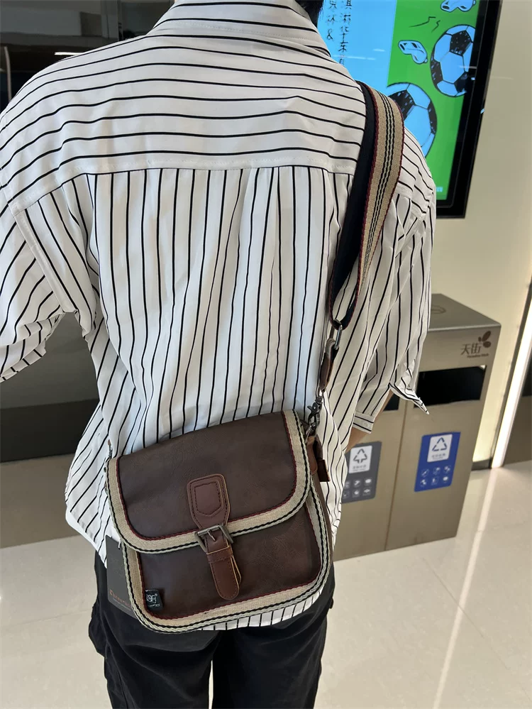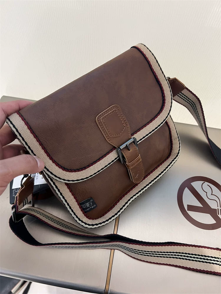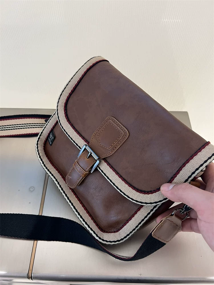 - Túi đeo chéo nhỏ sọc thời trang Threebox dành cho nam giới, phong cách retro giản dị, túi đeo vai bằng da mềm kiểu Nhật Bản và Hàn Quốc có khóa, túi xách nữ