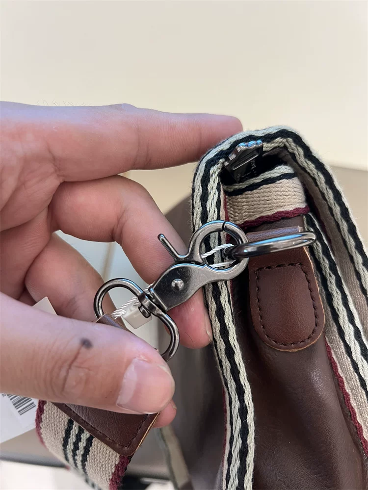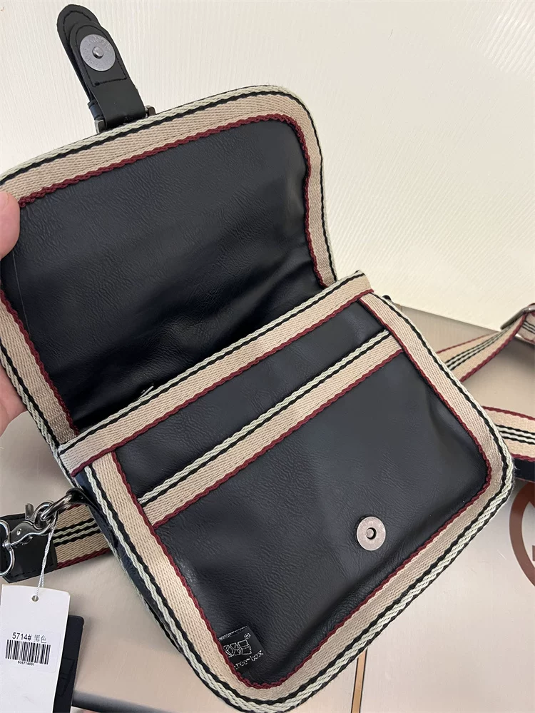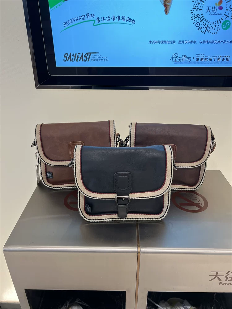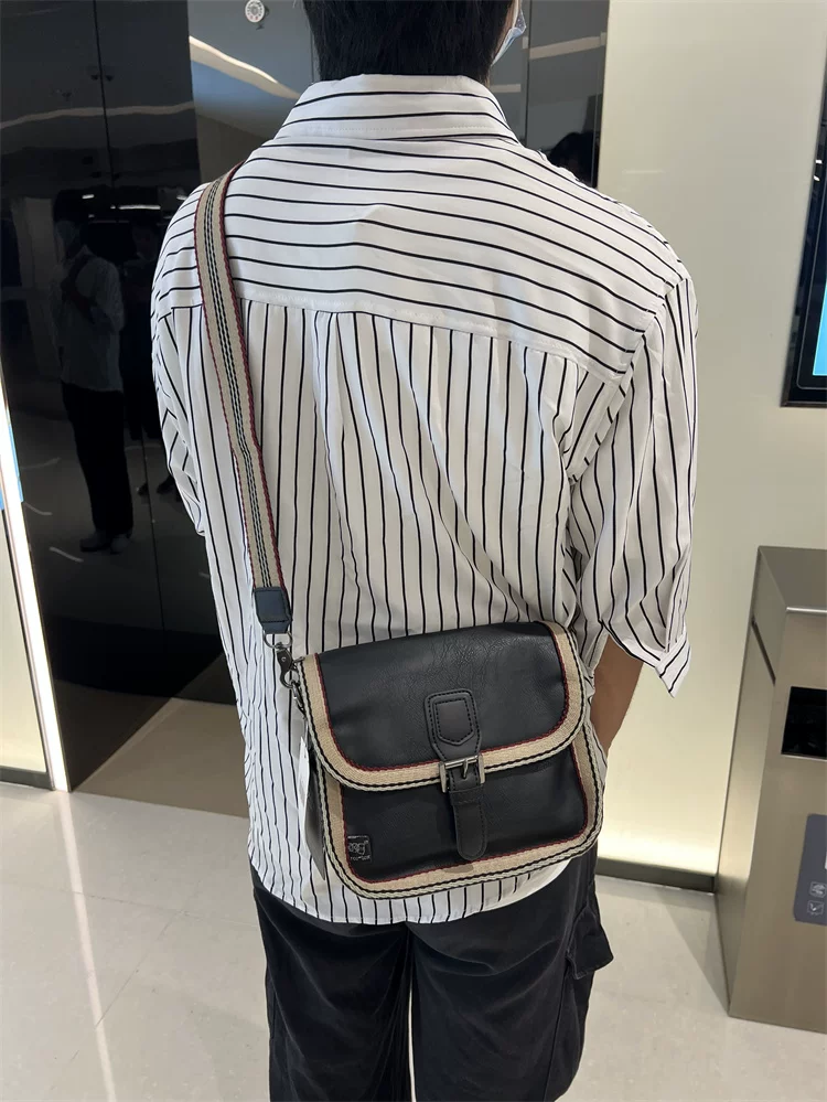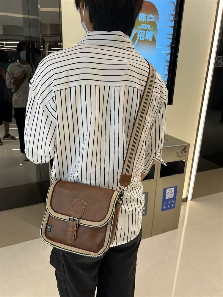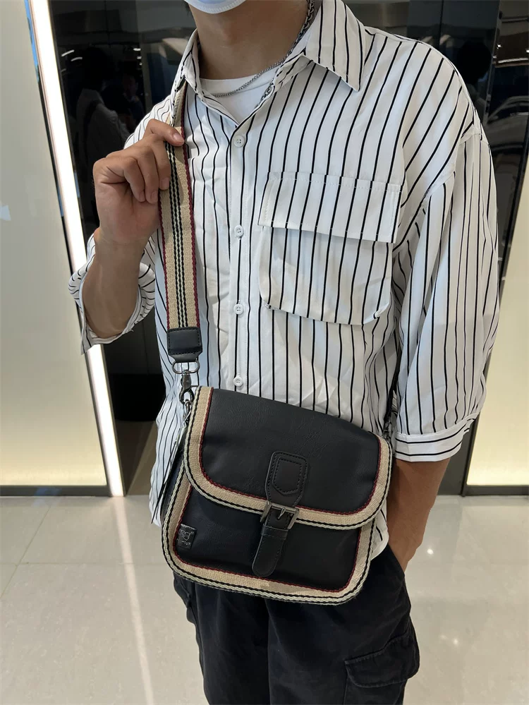 - Túi đeo chéo nhỏ sọc thời trang Threebox dành cho nam giới, phong cách retro giản dị, túi đeo vai bằng da mềm kiểu Nhật Bản và Hàn Quốc có khóa, túi xách nữ