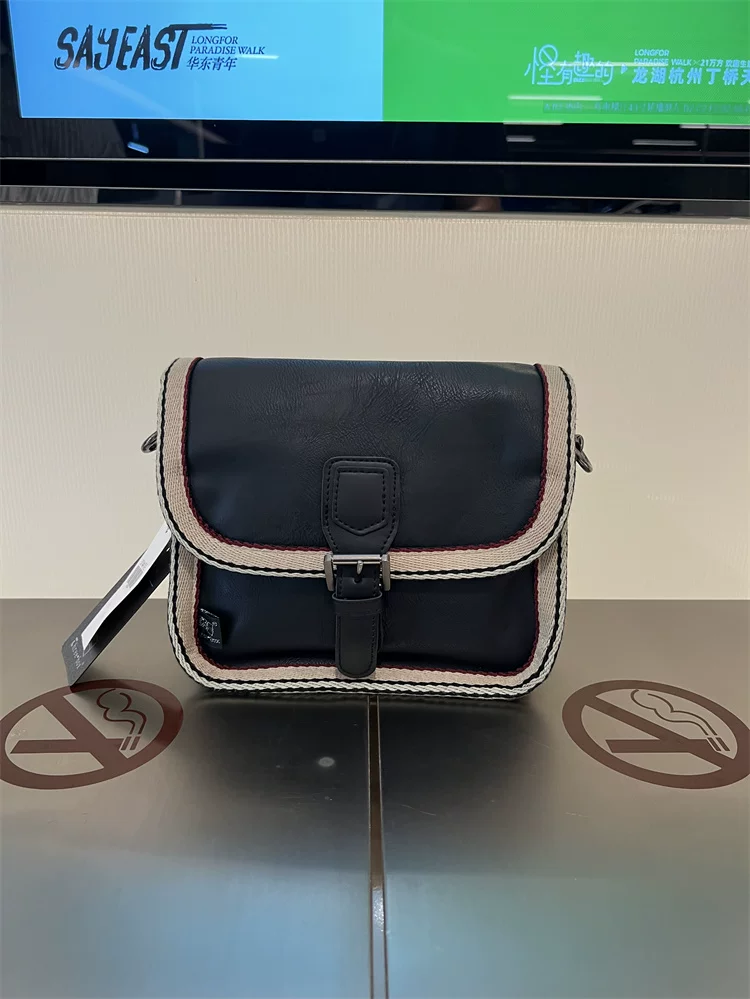 Túi đeo chéo nhỏ sọc thời trang Threebox dành cho nam giới, phong cách retro giản dị, túi đeo vai bằng da mềm kiểu Nhật Bản và Hàn Quốc có khóa, túi xách nữ