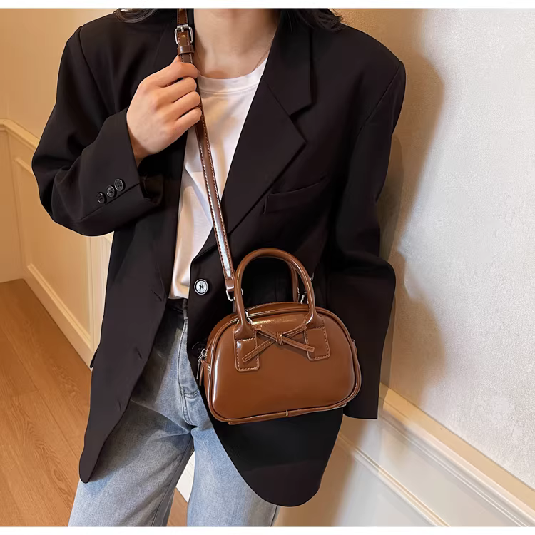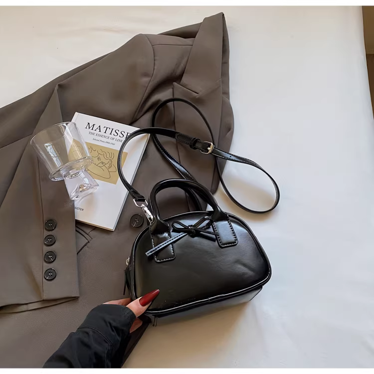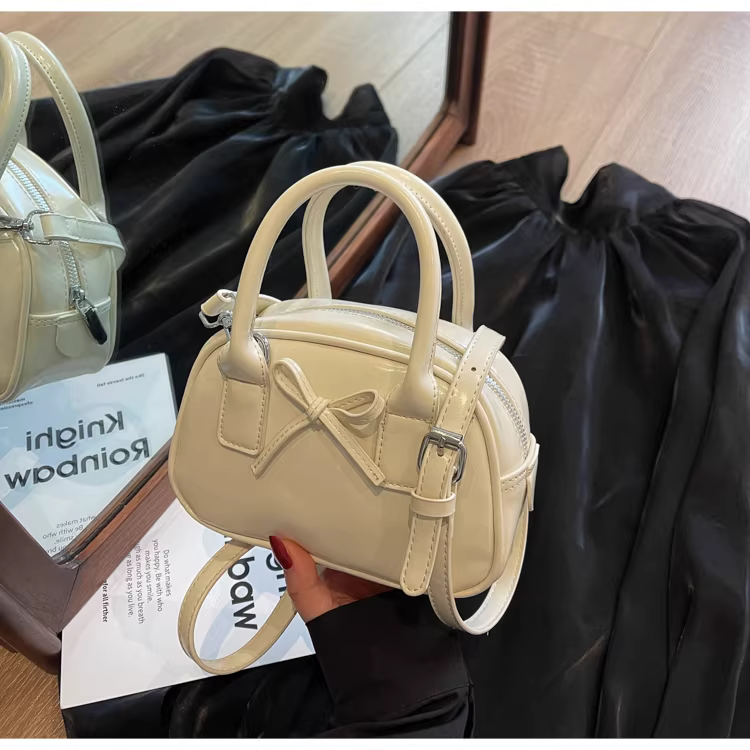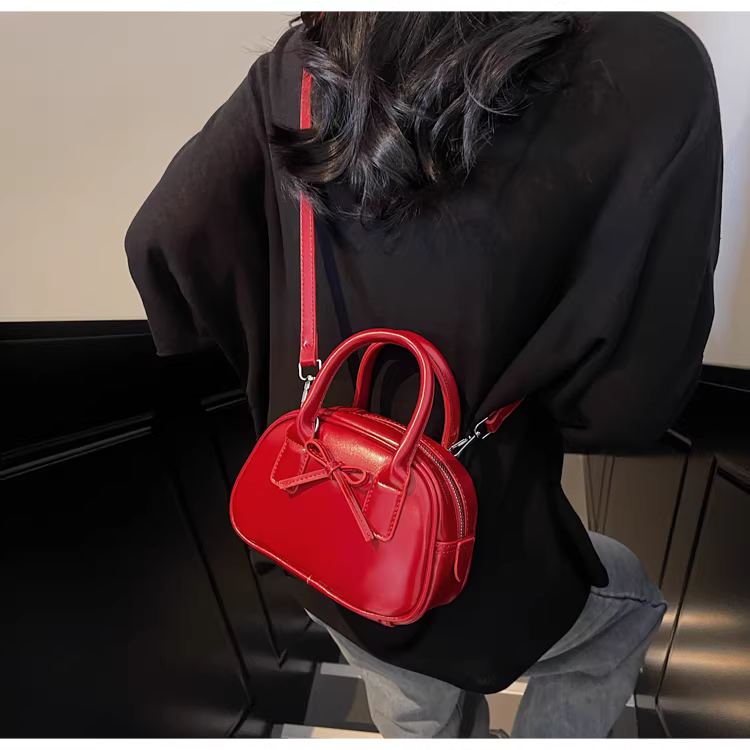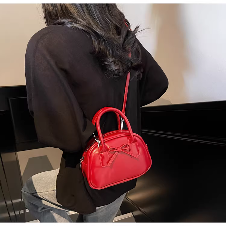 - Túi đeo chéo nhỏ thời trang đa năng kiểu Hàn Quốc năm 2025, thiết kế độc đáo, nơ đỏ, kiểu bowling dành cho nữ
