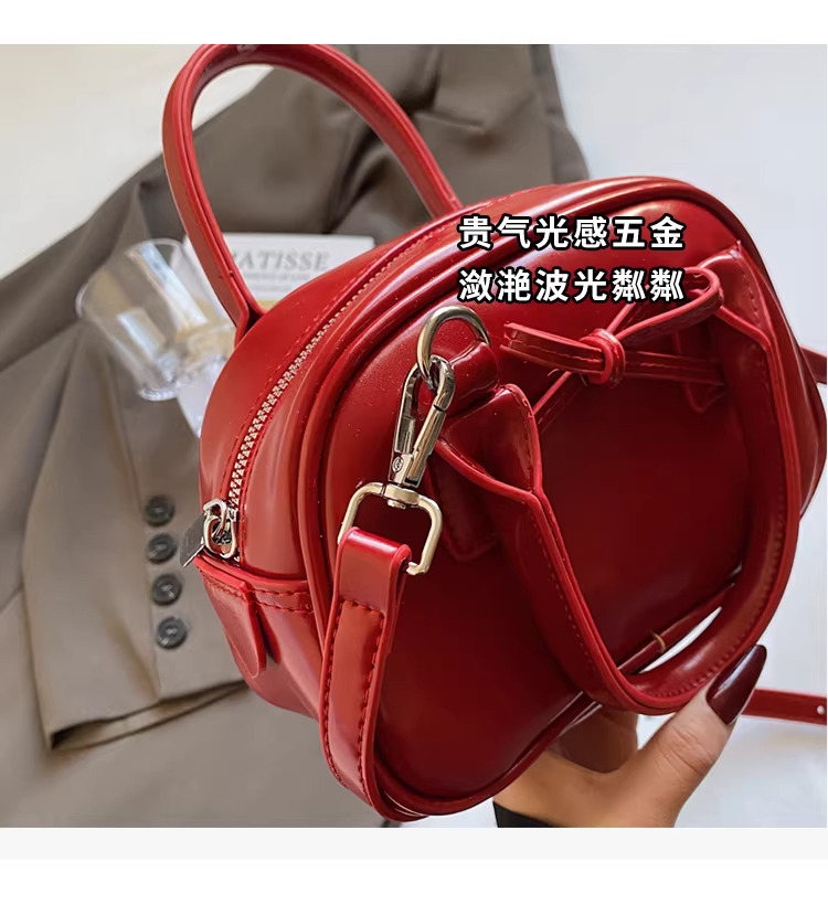 Túi đeo chéo nhỏ thời trang đa năng kiểu Hàn Quốc năm 2025, thiết kế độc đáo, nơ đỏ, kiểu bowling dành cho nữ