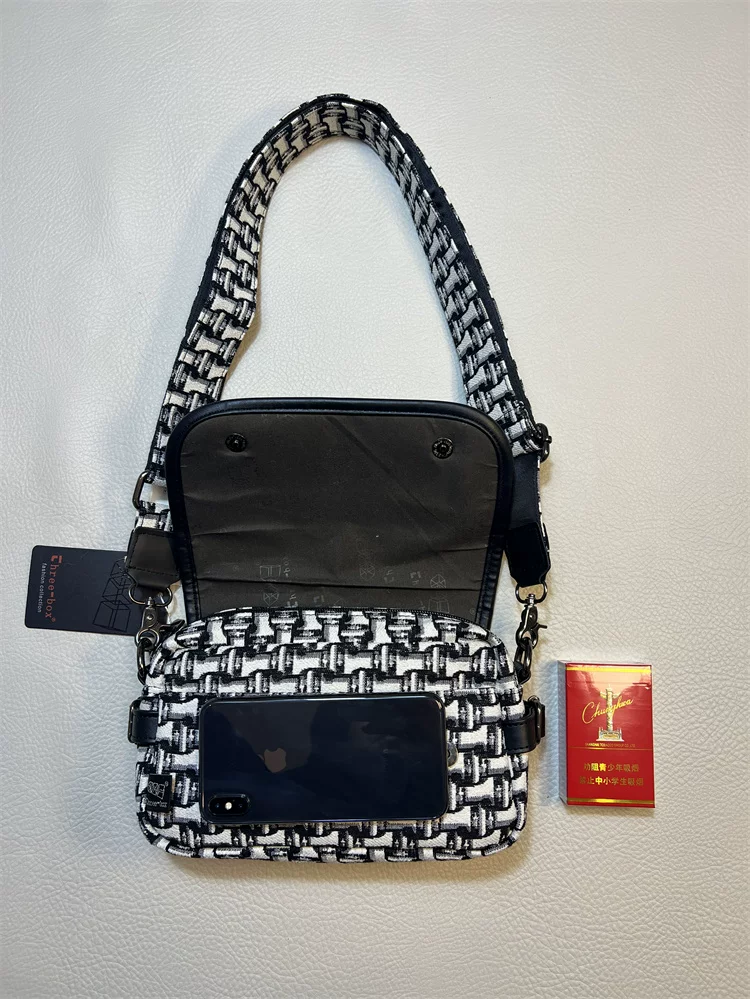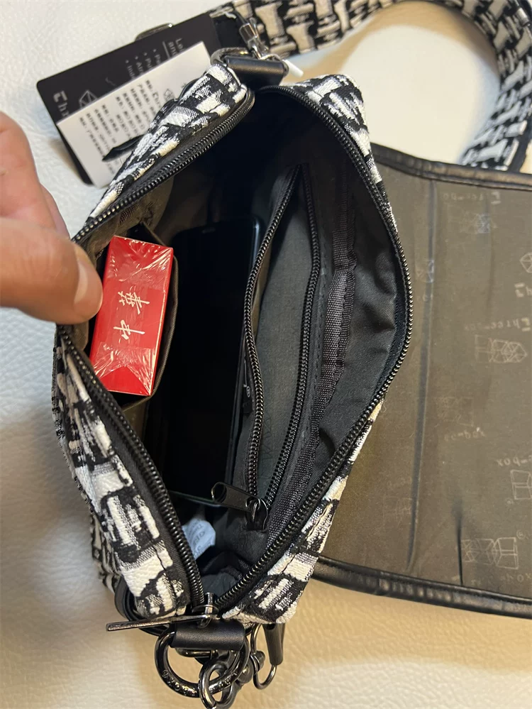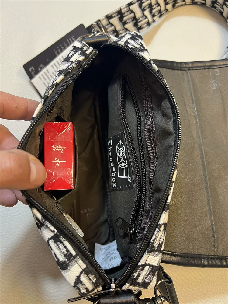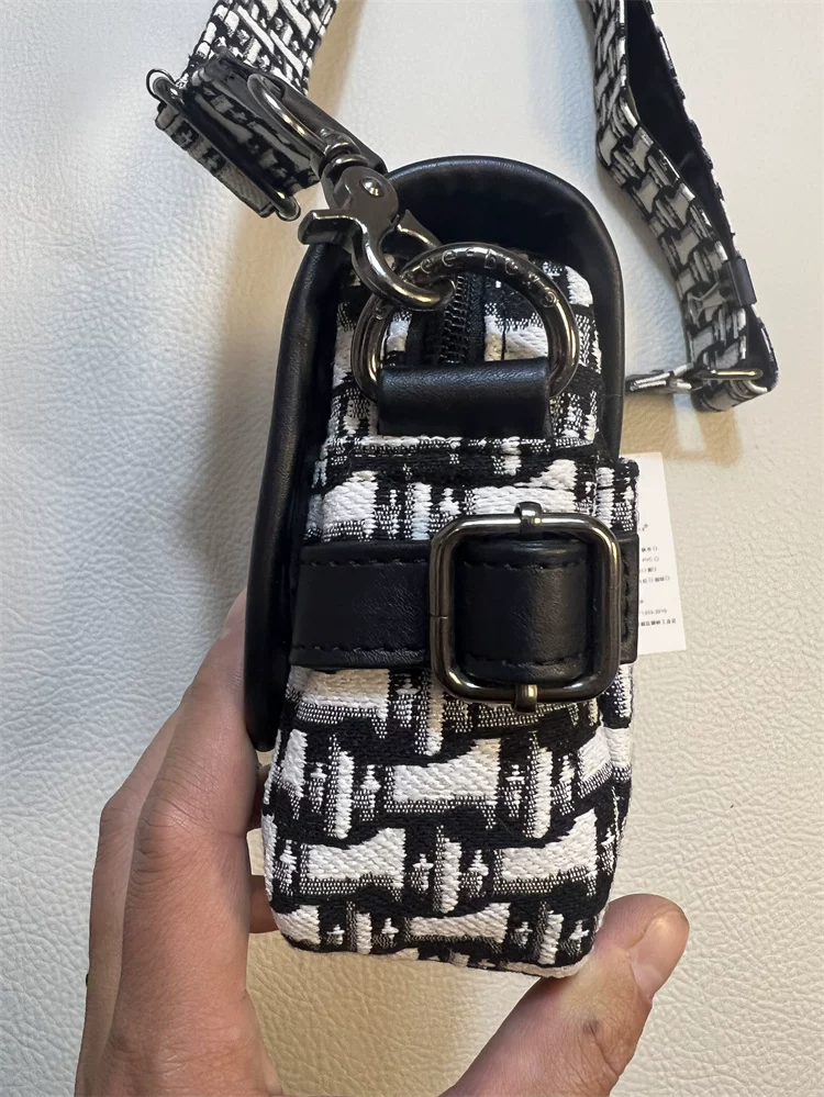 - Túi đeo chéo nhỏ thời trang họa tiết răng cưa nữ 2025, túi đeo vai unisex kiểu Nhật Bản và Hàn Quốc, phối nơ kẻ caro, phong cách giản dị