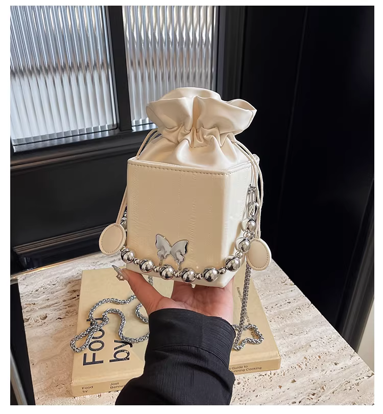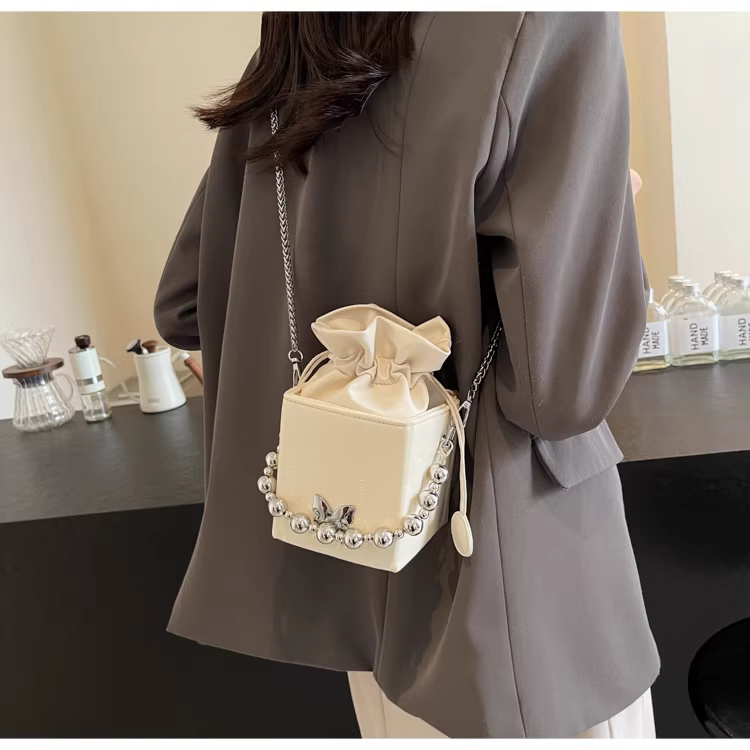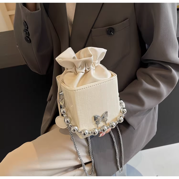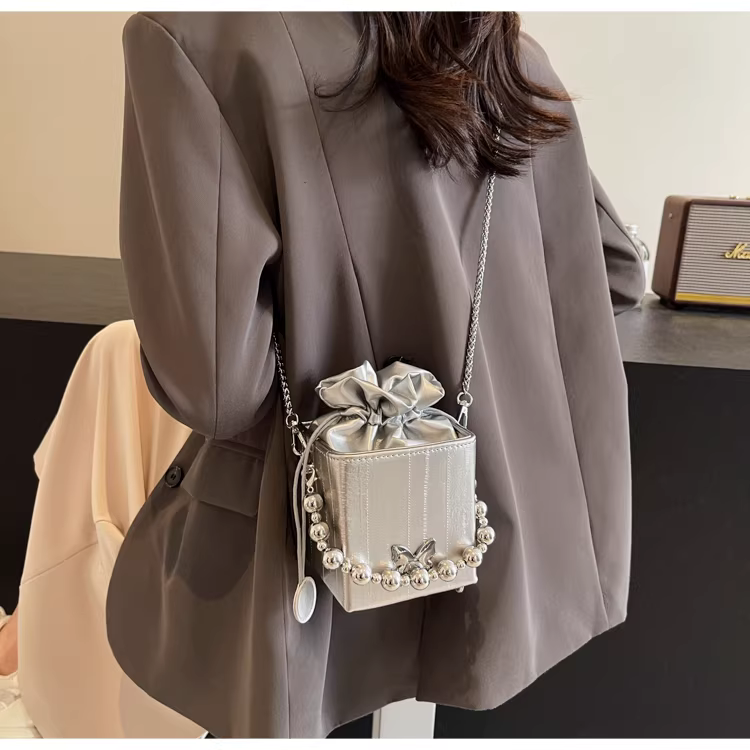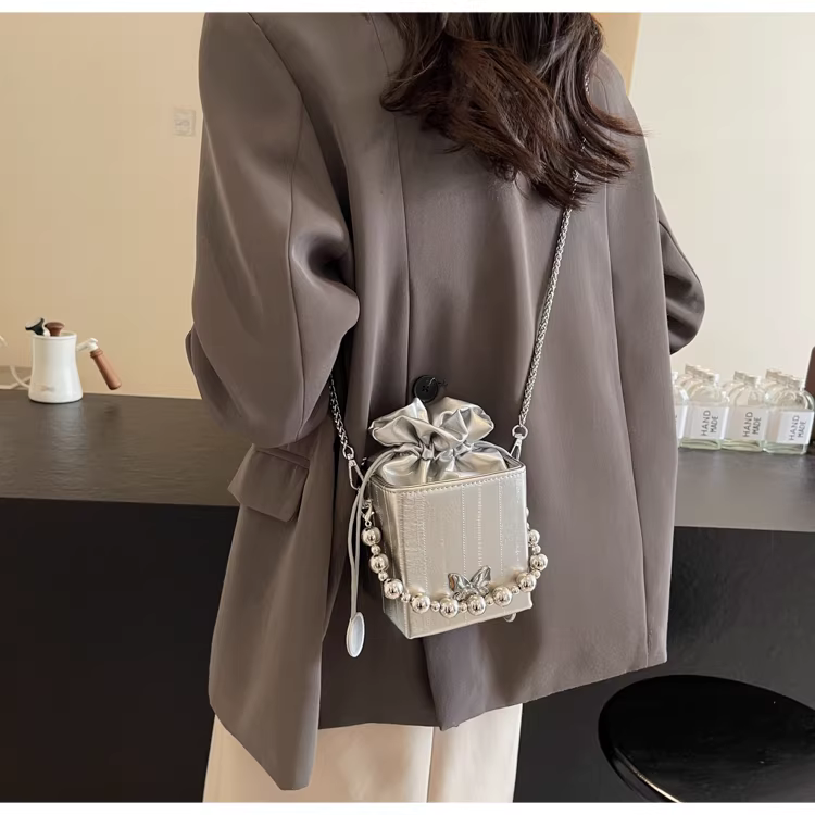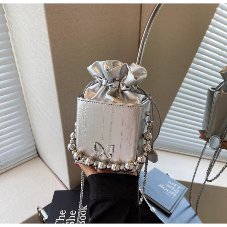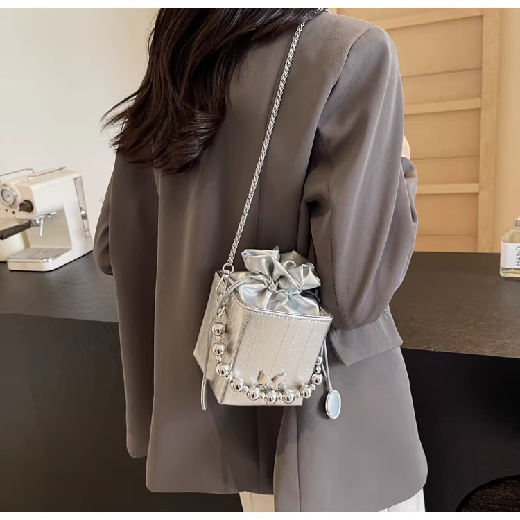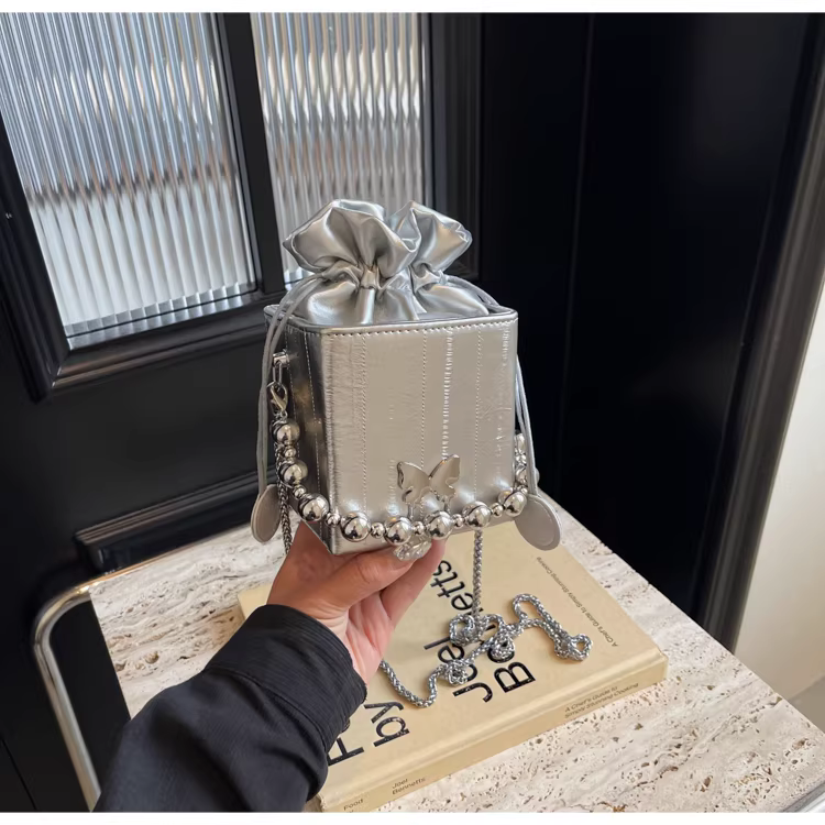 - Túi đeo chéo nữ cao cấp, kiểu dáng độc đáo, mẫu mới 2025, mùa thu đông, màu bạc, đa năng, dây xích