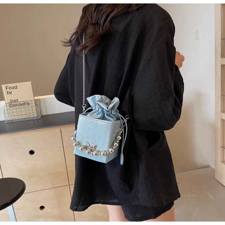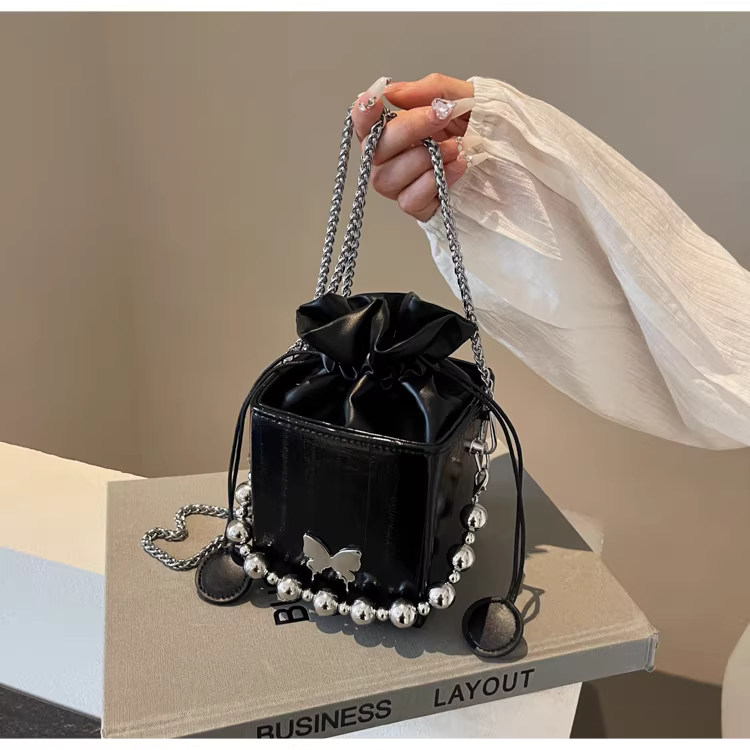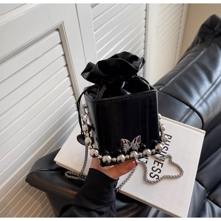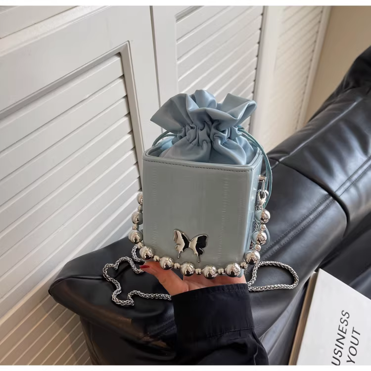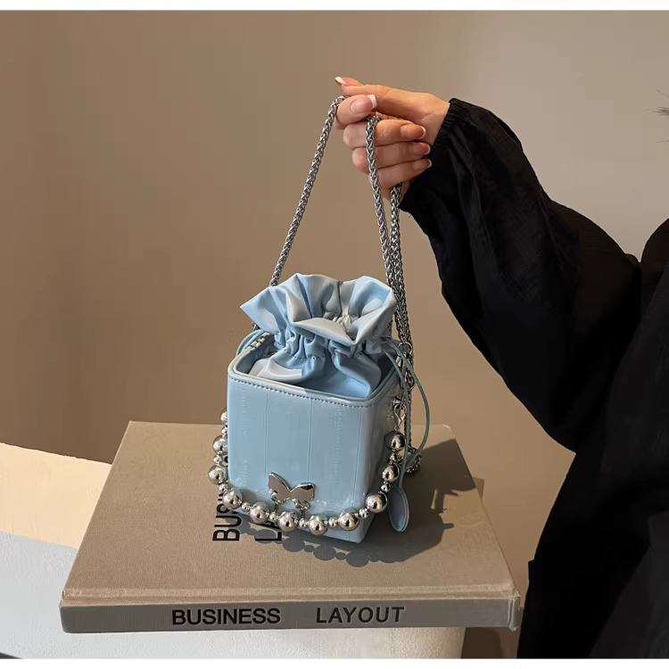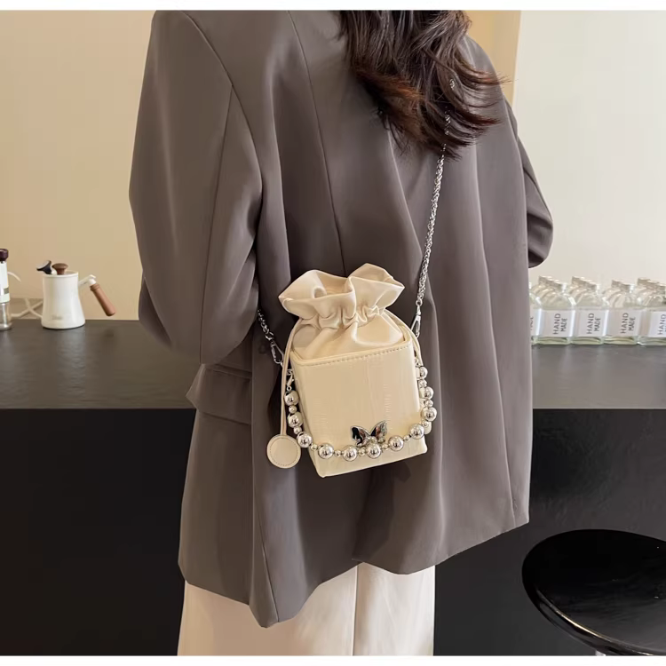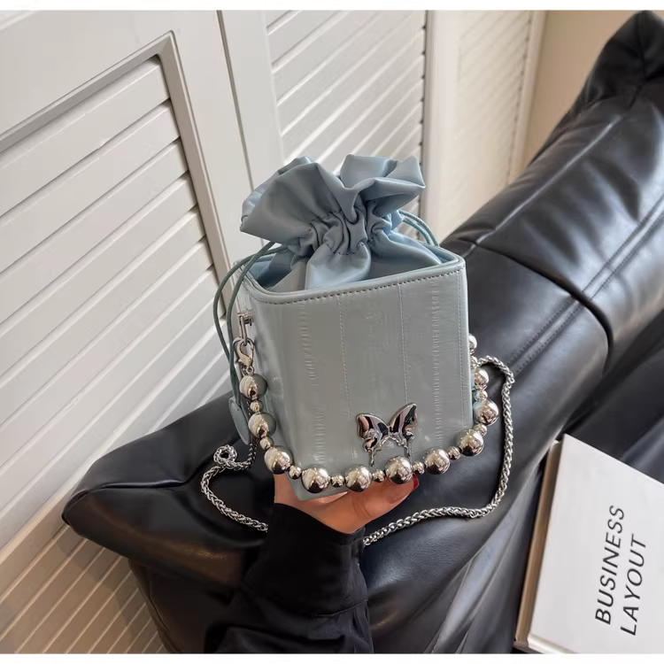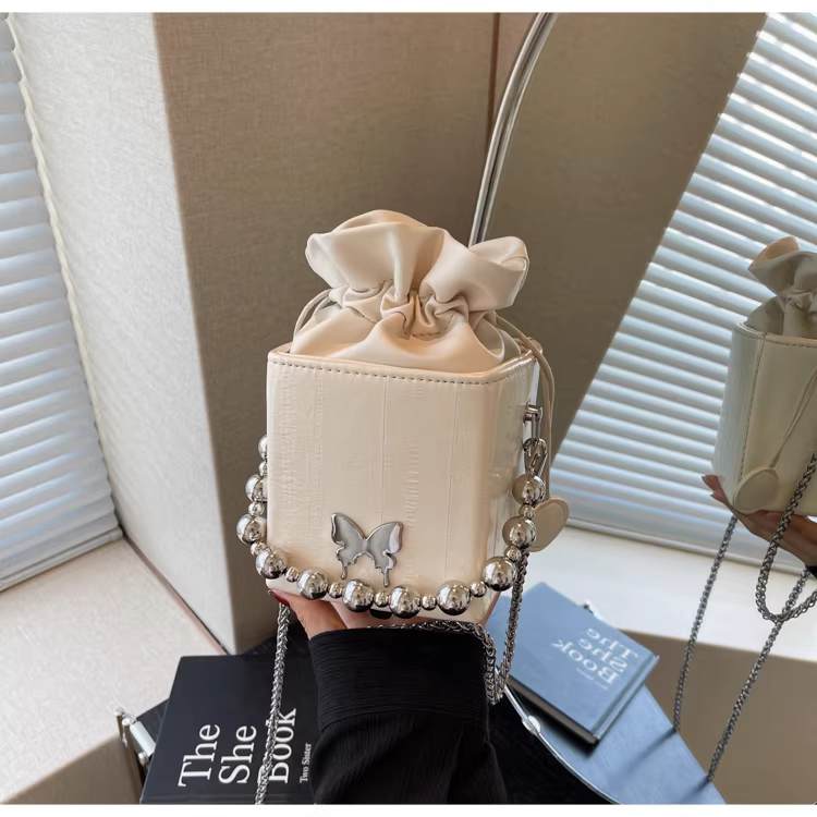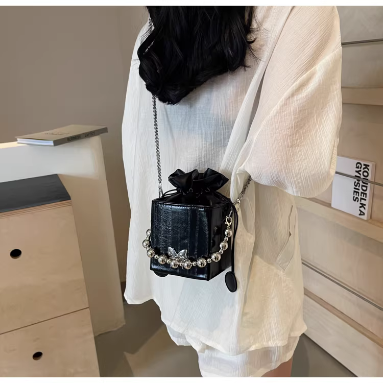 - Túi đeo chéo nữ cao cấp, kiểu dáng độc đáo, mẫu mới 2025, mùa thu đông, màu bạc, đa năng, dây xích