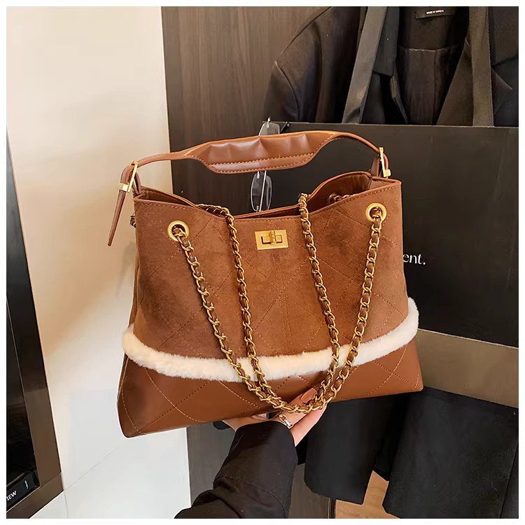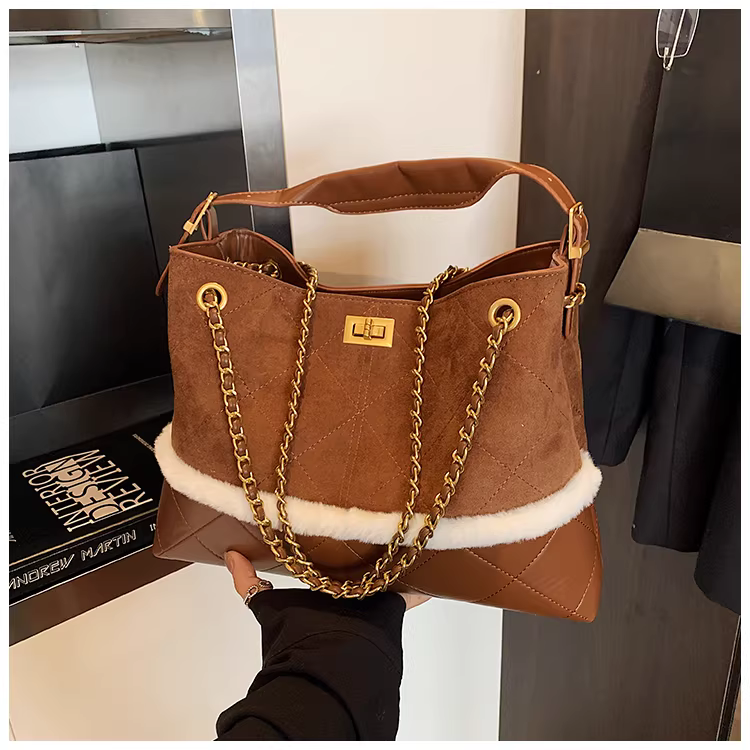 - Túi đeo chéo nữ chất liệu lông mềm kiểu retro, dung tích lớn, mẫu mới thu đông 2025, túi tote đi làm