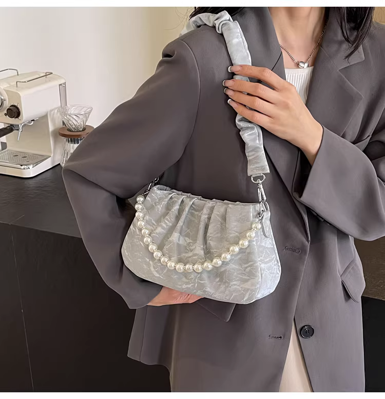 Túi đeo chéo nữ một dây xếp ly, thiết kế độc đáo mùa thu đông 2025, túi vuông nhỏ cao cấp