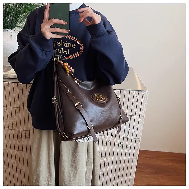 - Túi đeo chéo nữ retro, dung tích lớn, mẫu mới thu đông 2025, kiểu dáng giản dị, đa năng, có thể dùng làm balo