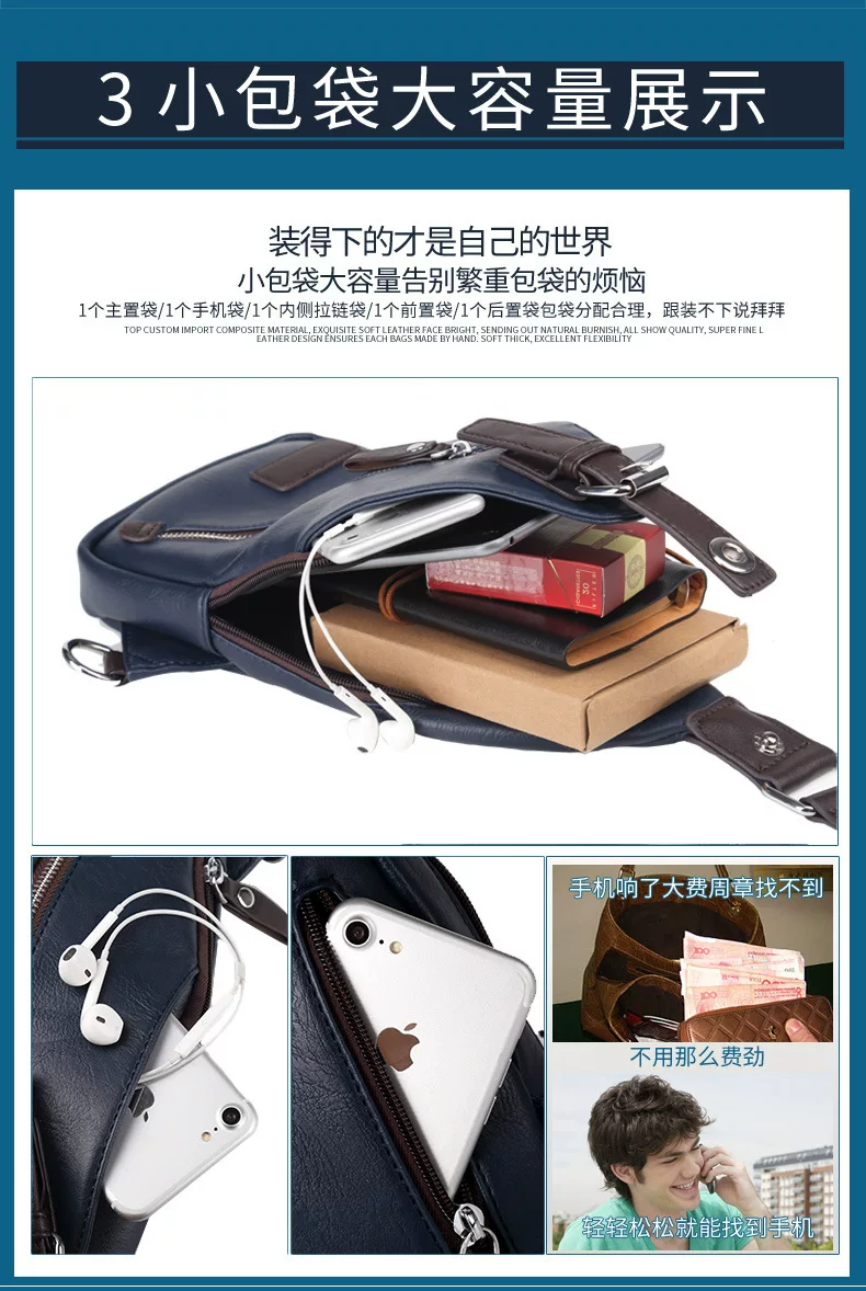 - Túi đeo ngực cho nam, túi da mềm thông thường phong cách Hàn Quốc dành cho nam, ba lô thể thao ngoài trời, túi đeo chéo thời trang