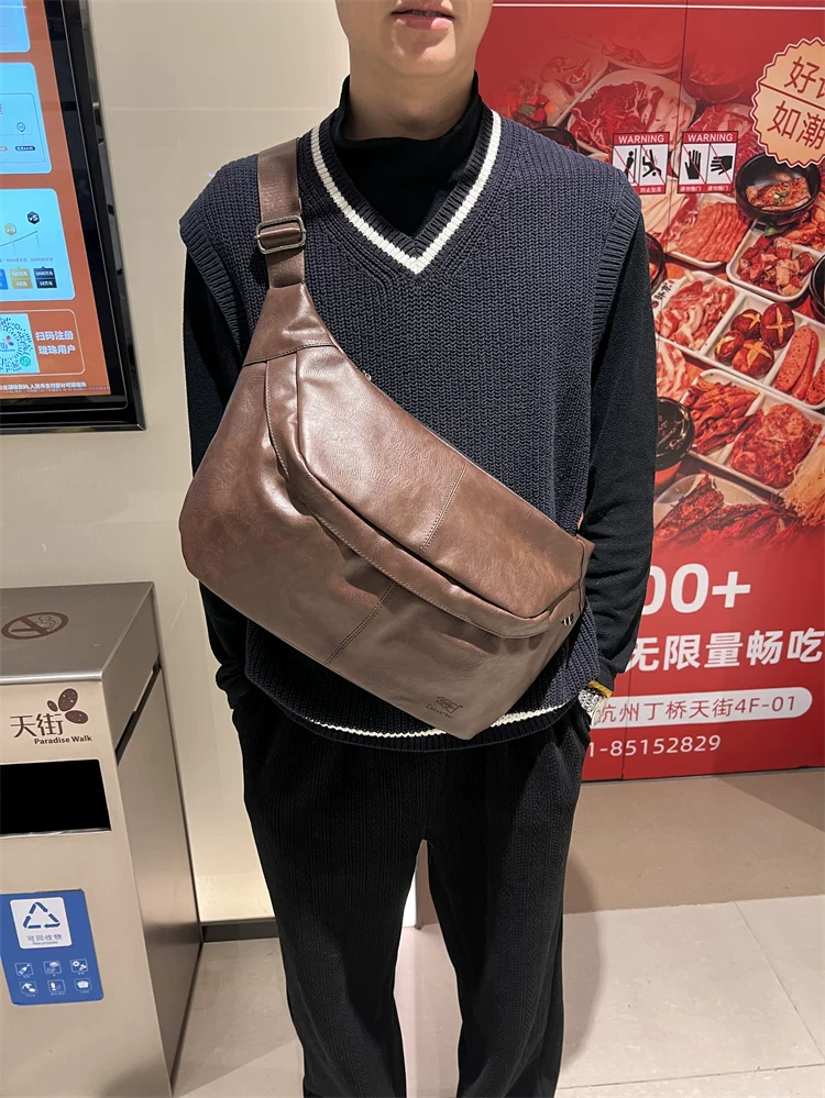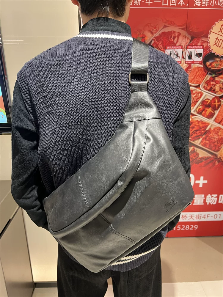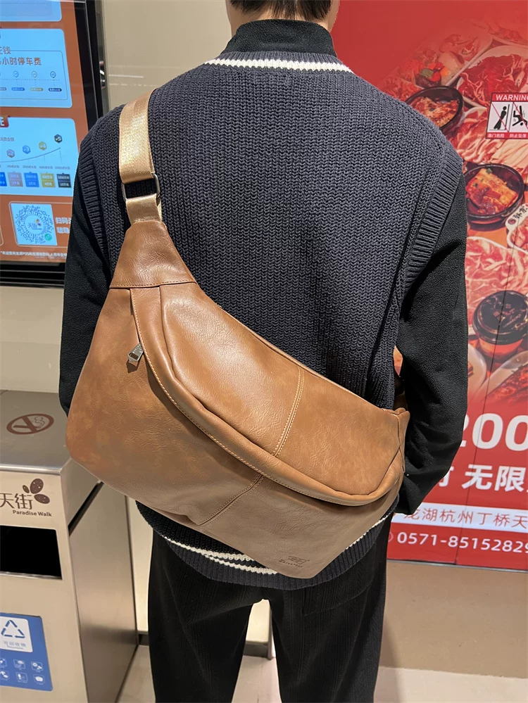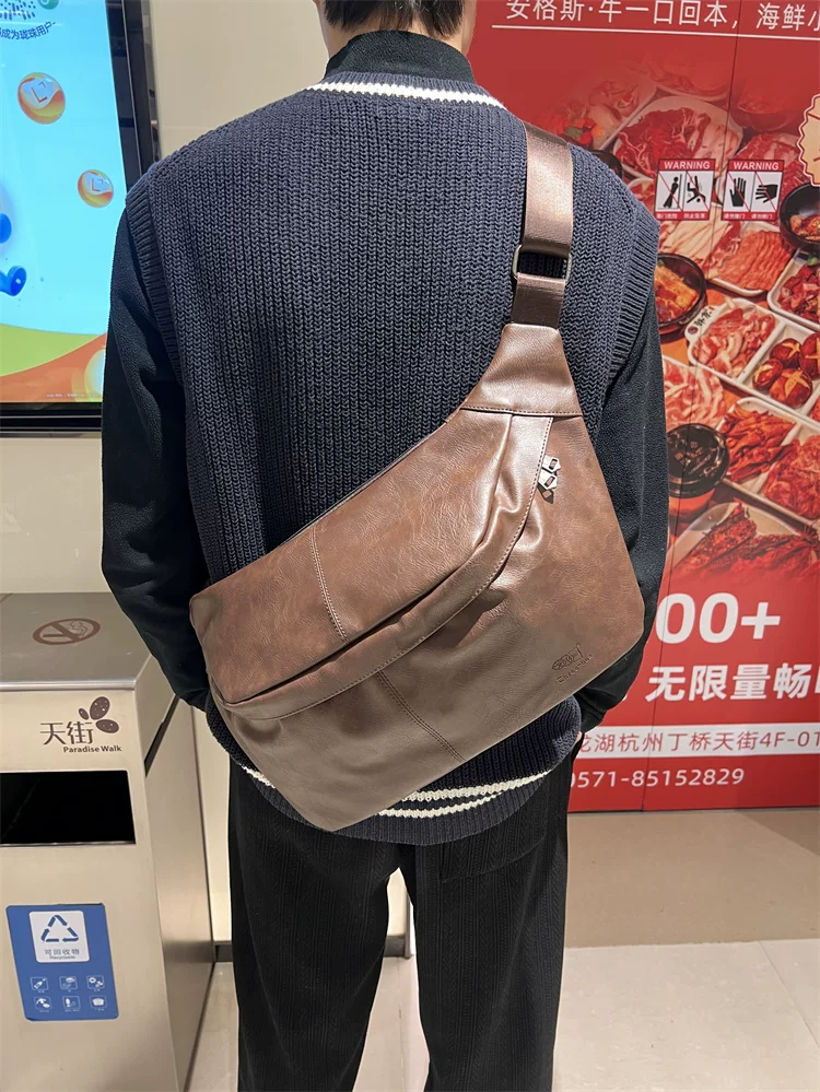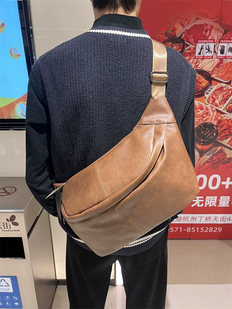 - Túi đeo ngực nam da mềm 2024, túi đeo chéo một bên vai thời trang, dung tích lớn, ba lô thể thao đa năng, đi xe đạp