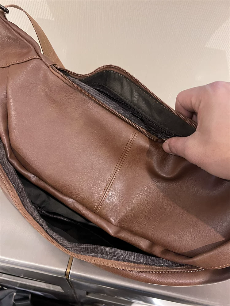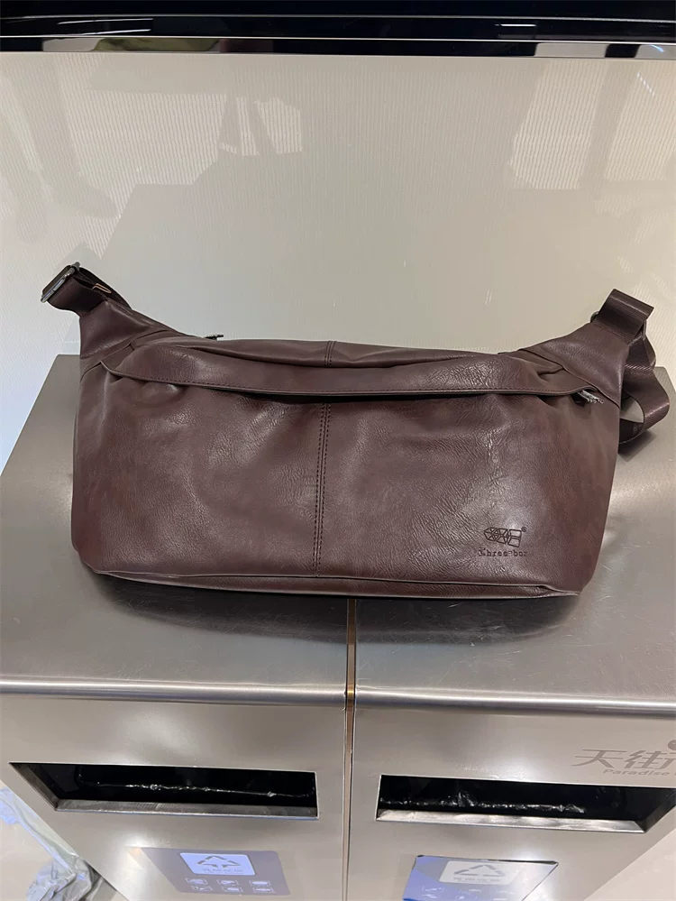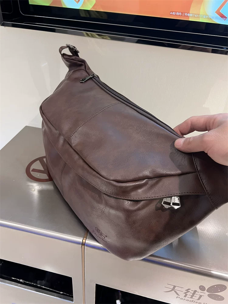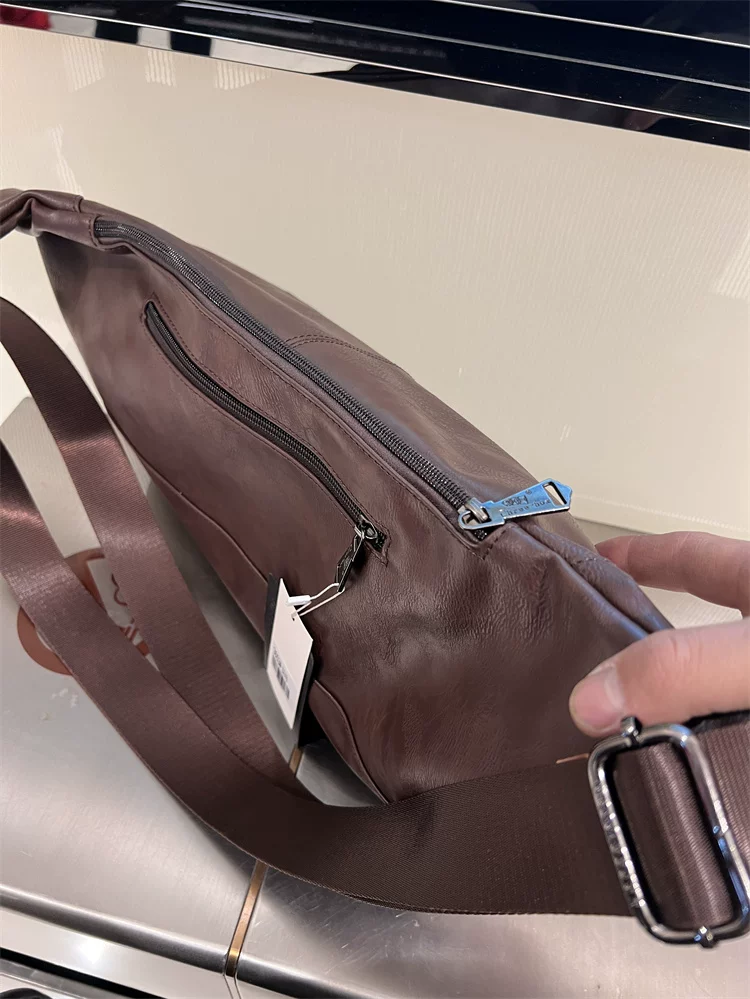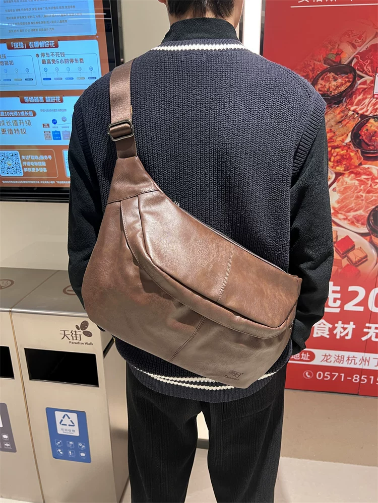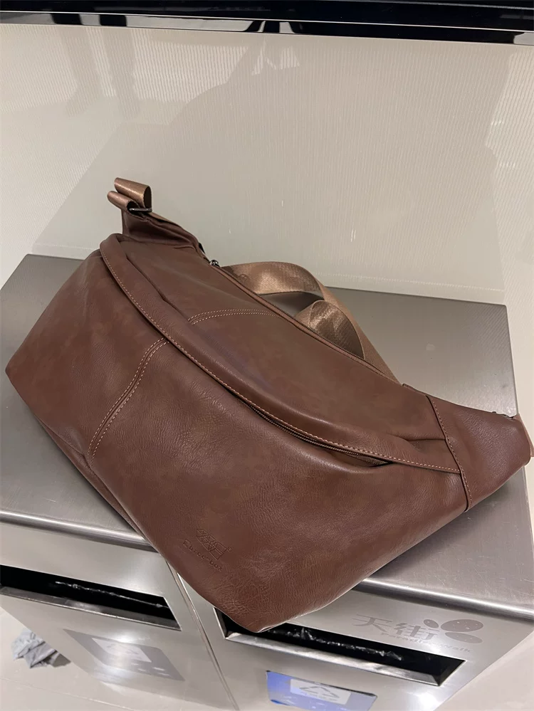- Túi đeo ngực nam da mềm 2024, túi đeo chéo một bên vai thời trang, dung tích lớn, ba lô thể thao đa năng, đi xe đạp