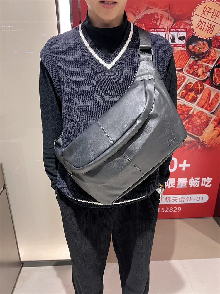 Túi đeo ngực nam da mềm 2024, túi đeo chéo một bên vai thời trang, dung tích lớn, ba lô thể thao đa năng, đi xe đạp