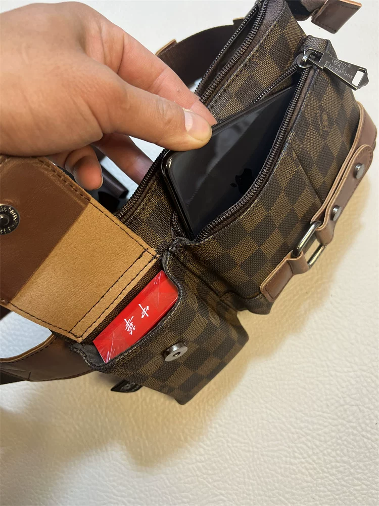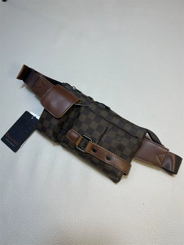 Túi đeo ngực nam thời trang ba ngăn kiểu Nhật Bản và Hàn Quốc, túi đeo hông kẻ caro, túi đeo vai unisex thời thượng, ba lô đeo chéo